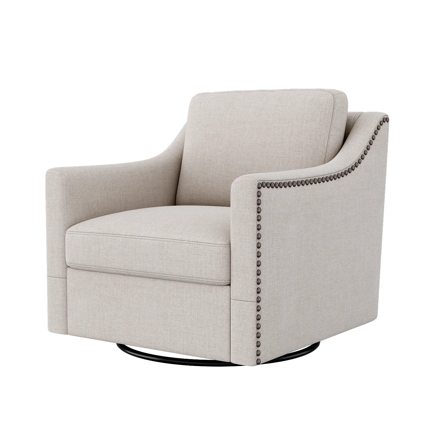 360 Degree Swivel Armchair Cotton Linen Skin-Friendly Fabric Ergonomic Design Brass Nail Decorative Armchair Living Room Chairs Bedroom Chairs Living Room Chairs Black Legs Suitable For Indoor Homes - White