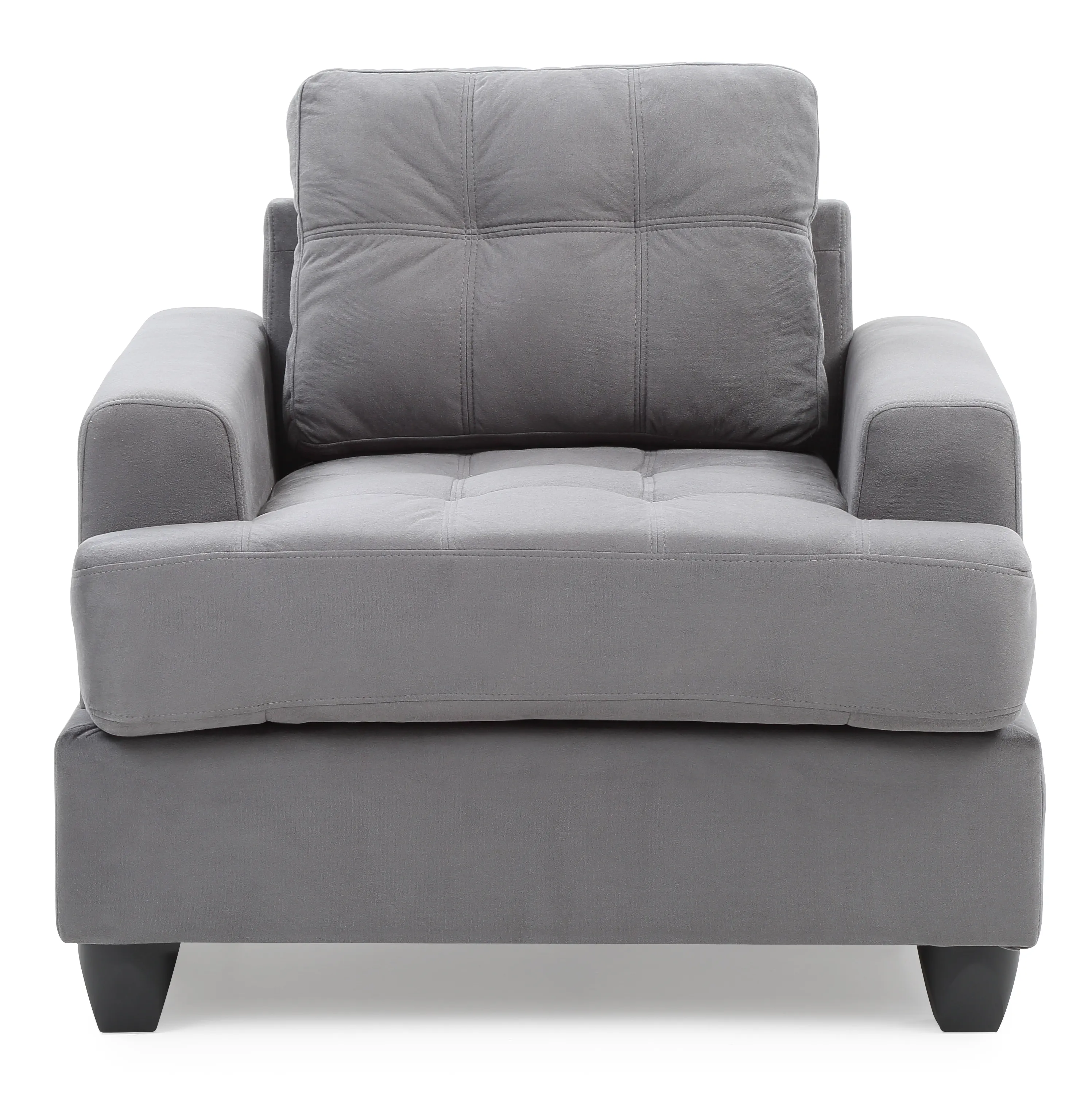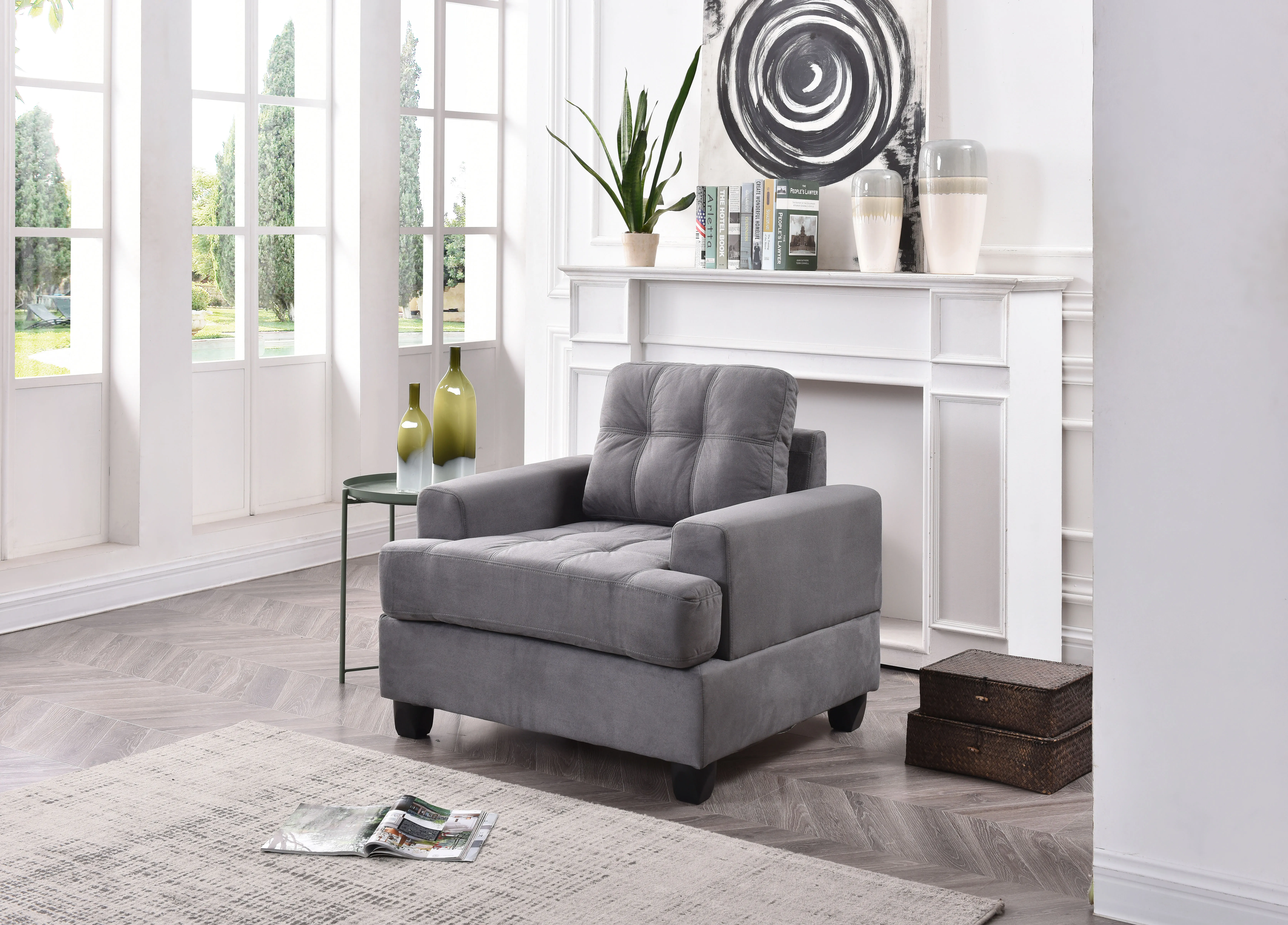 • Transitional Design in Soft Micro Suede Fabric: Covered in soft micro suede fabric, this chair features a transitional design that complements various decor styles.