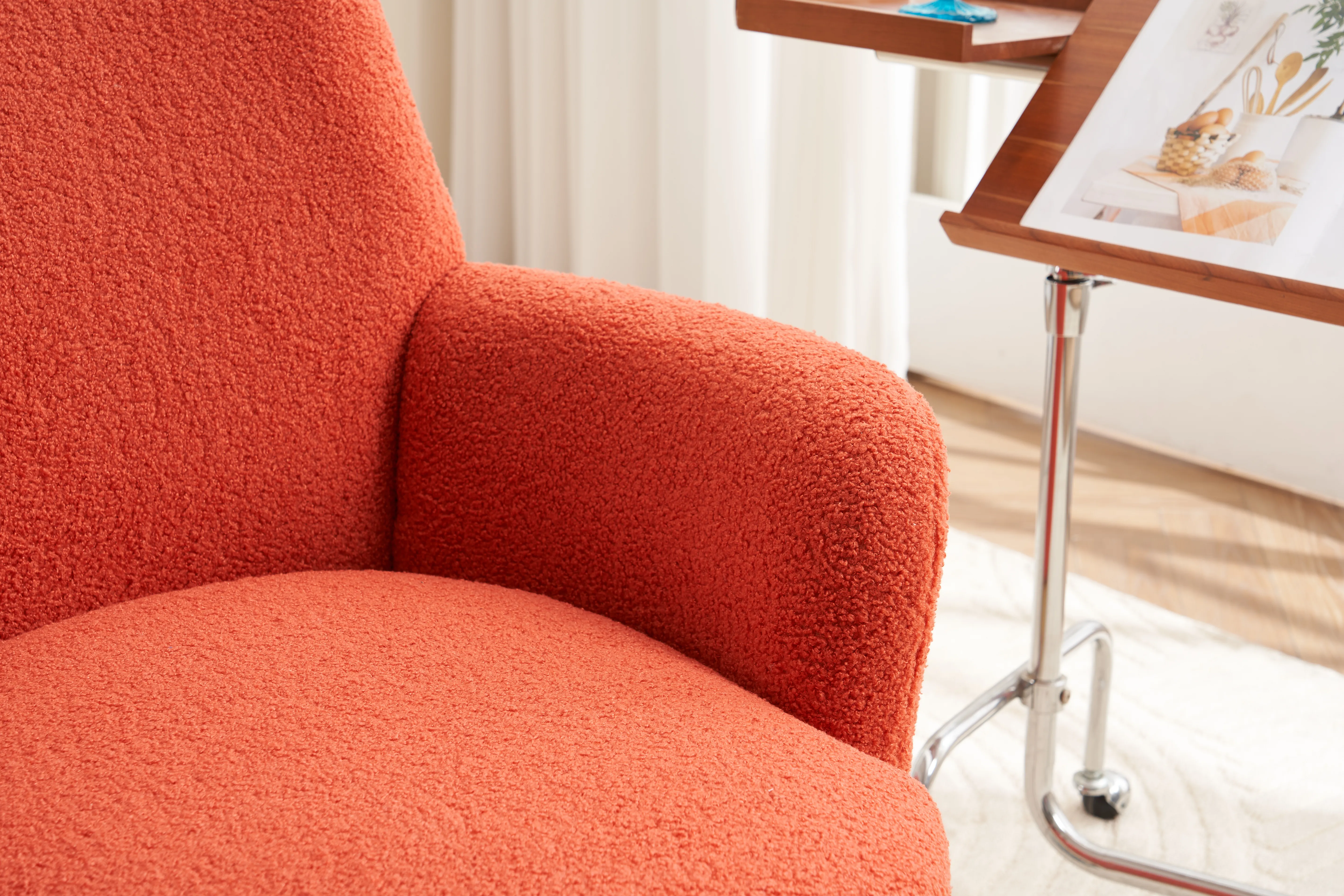 Teddy Swivel Barrel Chair, Swivel Accent Chairs Armchair For Living Room, Reading Chairs For Bedroom Comfy, Round Barrel Chairs With Gold Stainless Steel Base - Orange