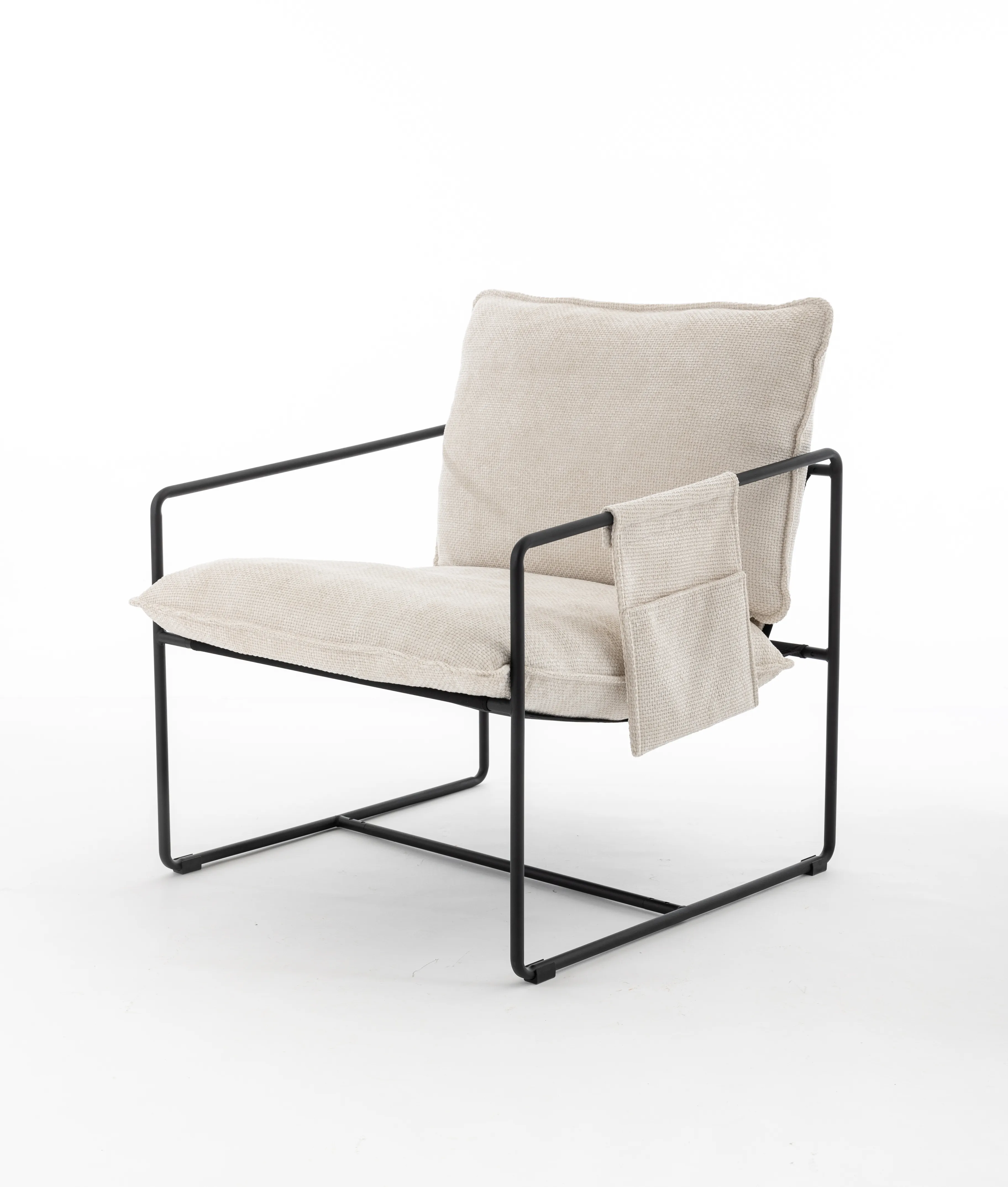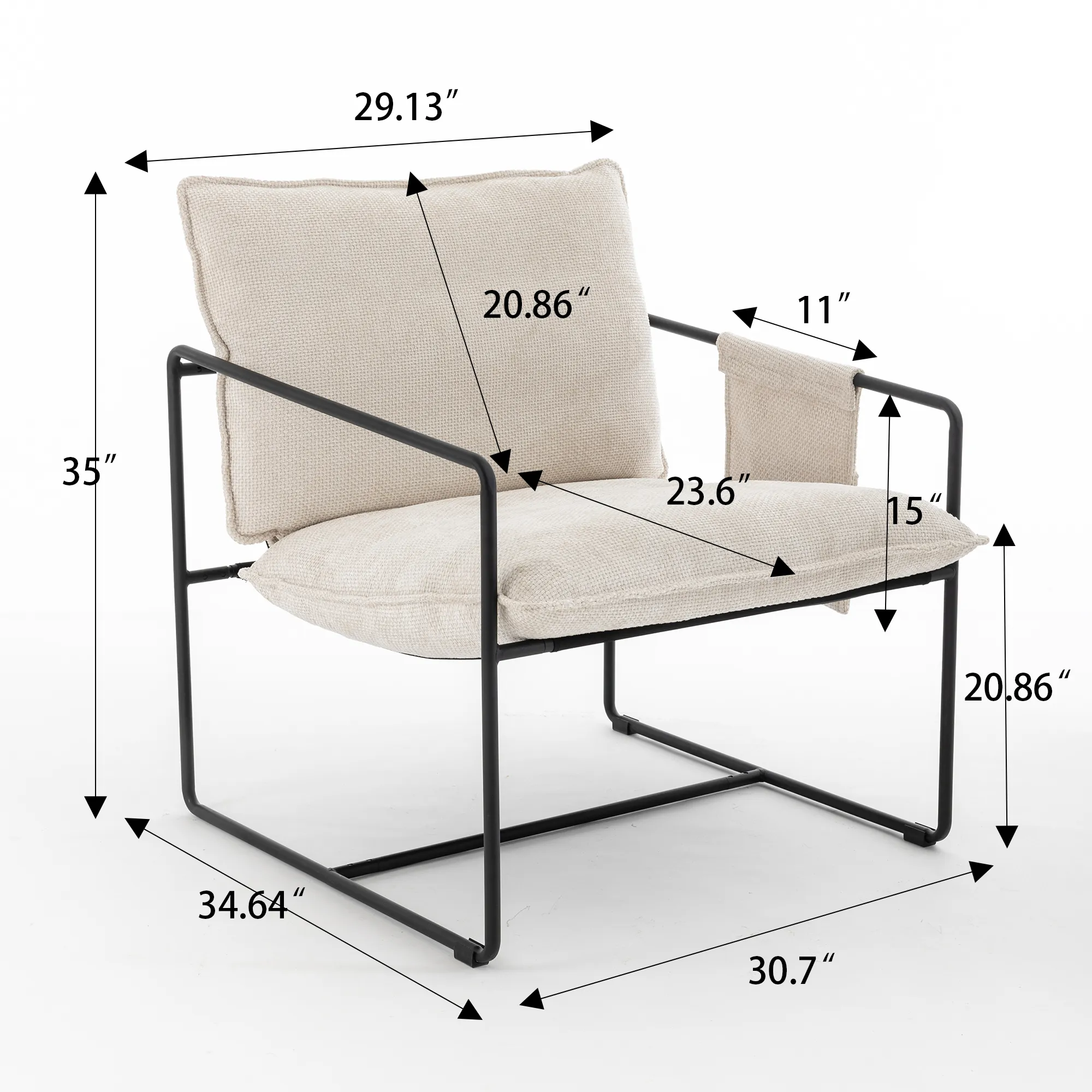 Upholstered Hanging Armchair With Arm Pocket Metal Frame, Crushed Foam Cushions And Skin-Friendly Braid For Living Room And Bedroom (Set of 2) - Beige