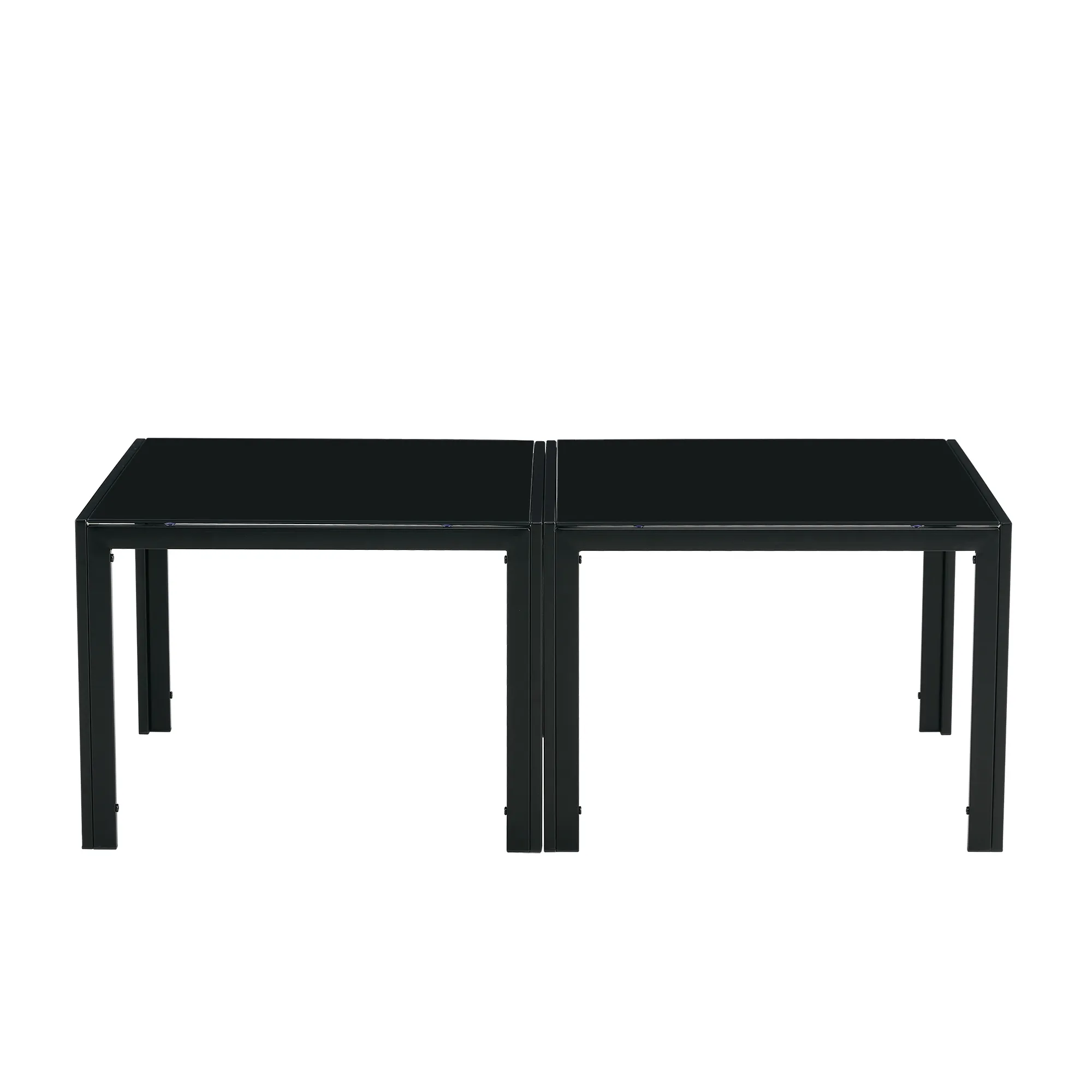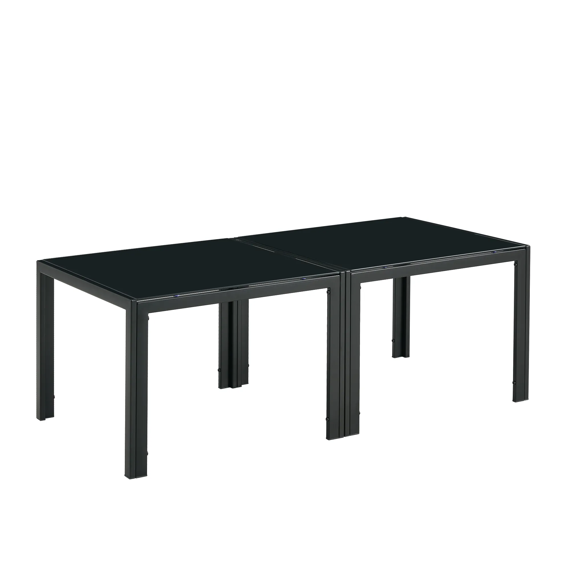 Sturdy and Functional Design: Consists of 2 tables with a weight capacity of 180lbs each, suitable for various needs. Versatile Usage: Can be used separately or together, ideal as a coffee table, computer table, or makeup table for office or living room. Elegant and Durable Construction: Features metal tube legs for stability and a smooth tempered glass top for easy cleaning. Modern and Sleek Appearance: Simple design with a black finish, perfect for contemporary spaces. Easy Assembly: Comes with all necessary hardware and clear instructions for hassle-free setup.