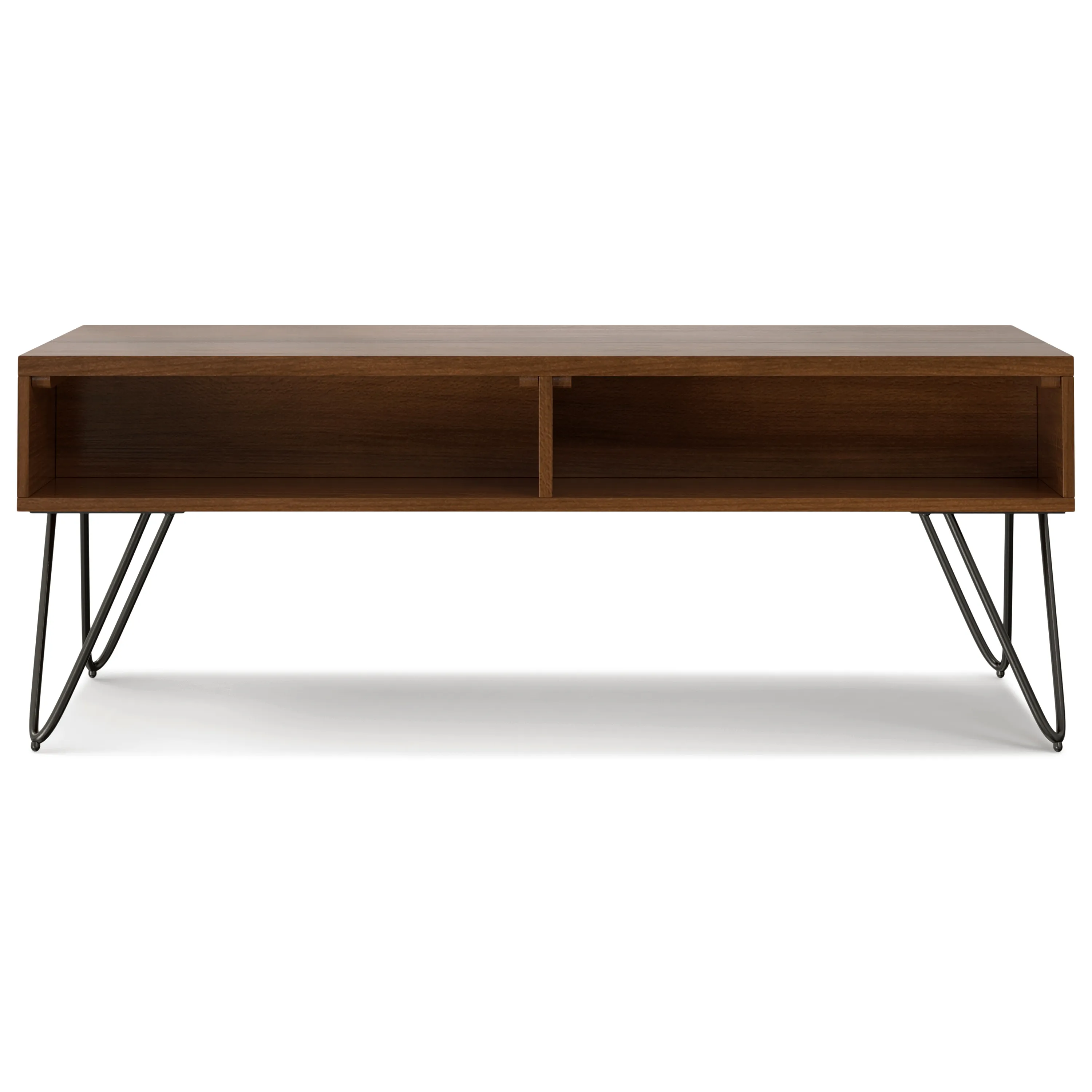 Style and convenience are at work in this uniquely functional Hunter Lift-Top Coffee Table. The top lifts up to reveal hidden storage, pulling toward you for the perfect surface to type on your laptop or eat in front of the television. The table features two open compartments for stacking books or displaying decorative objects. Black iron hairpin legs along with Solid Wood add an industrial component.