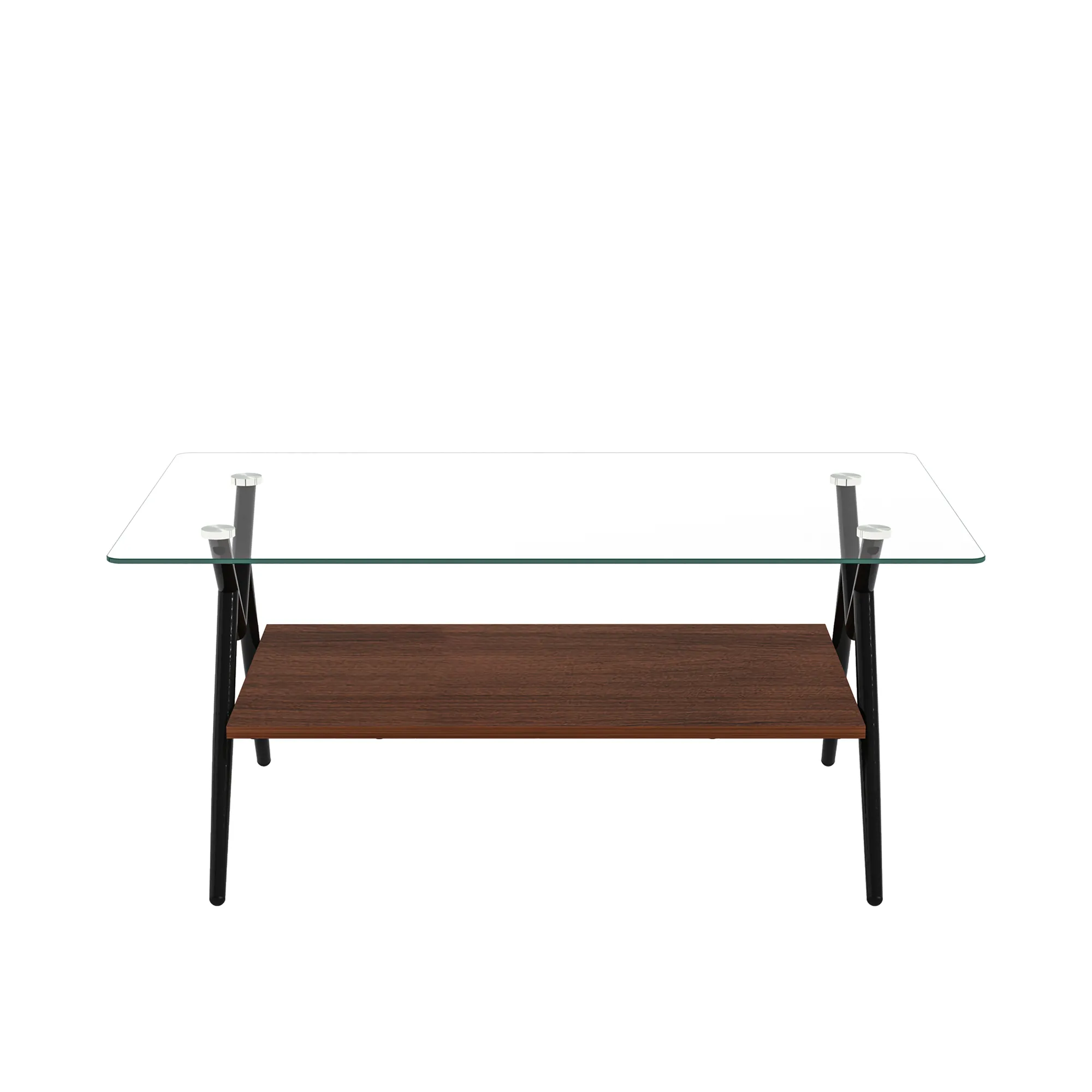 Rectangle Coffee Table With Tempered Glass Top And Metal Legs, Modern Table For Living Room, Transparent Glass - Dark Brown