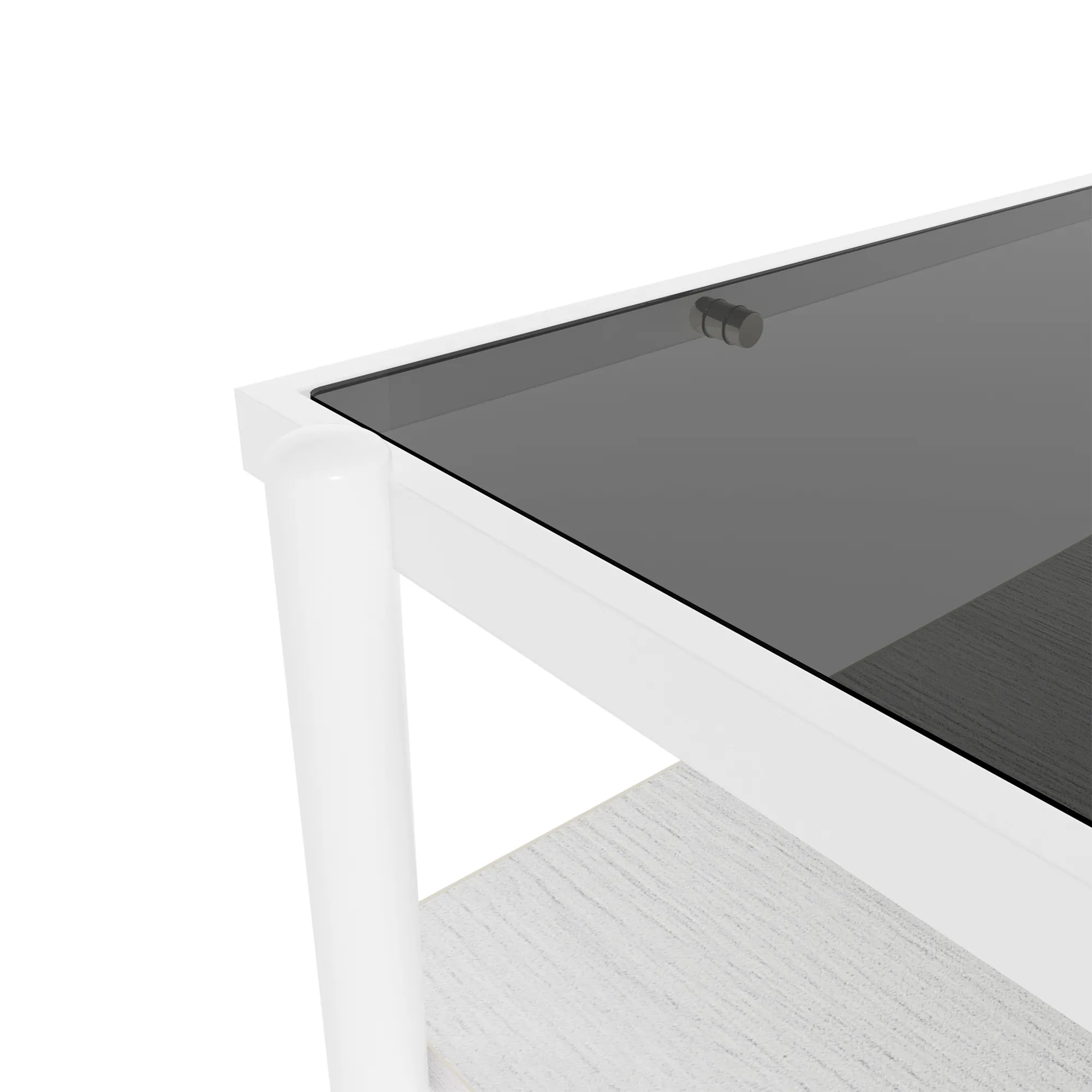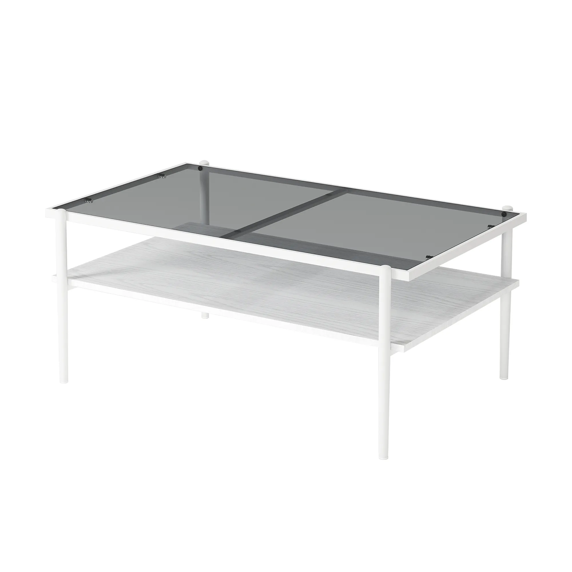Rectangle Coffee Table With Tempered Glass Top And White Legs, Modern Table For Living Room - Gray