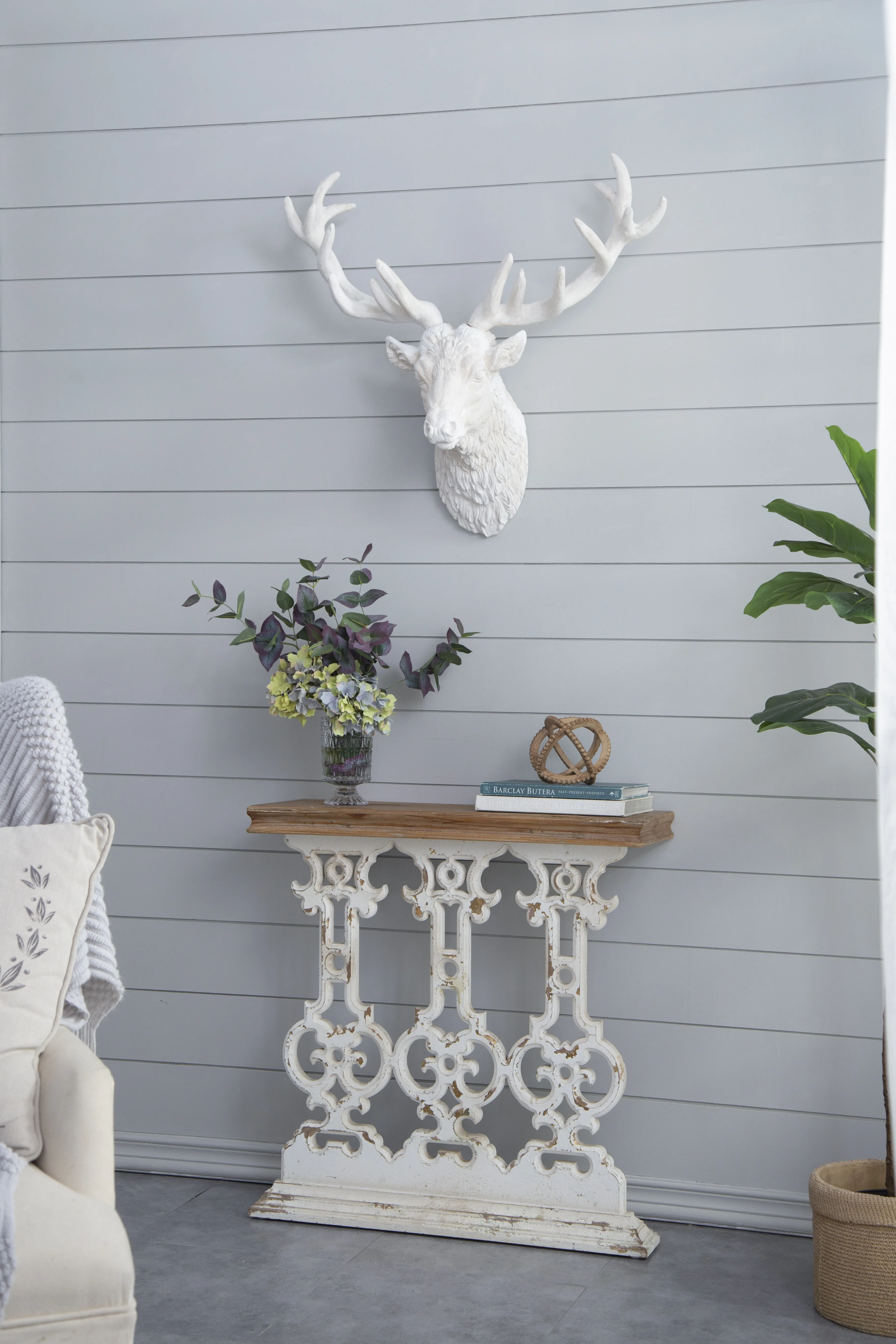 Classic Vintage Console Table With Wood Top - White Wash / Brown