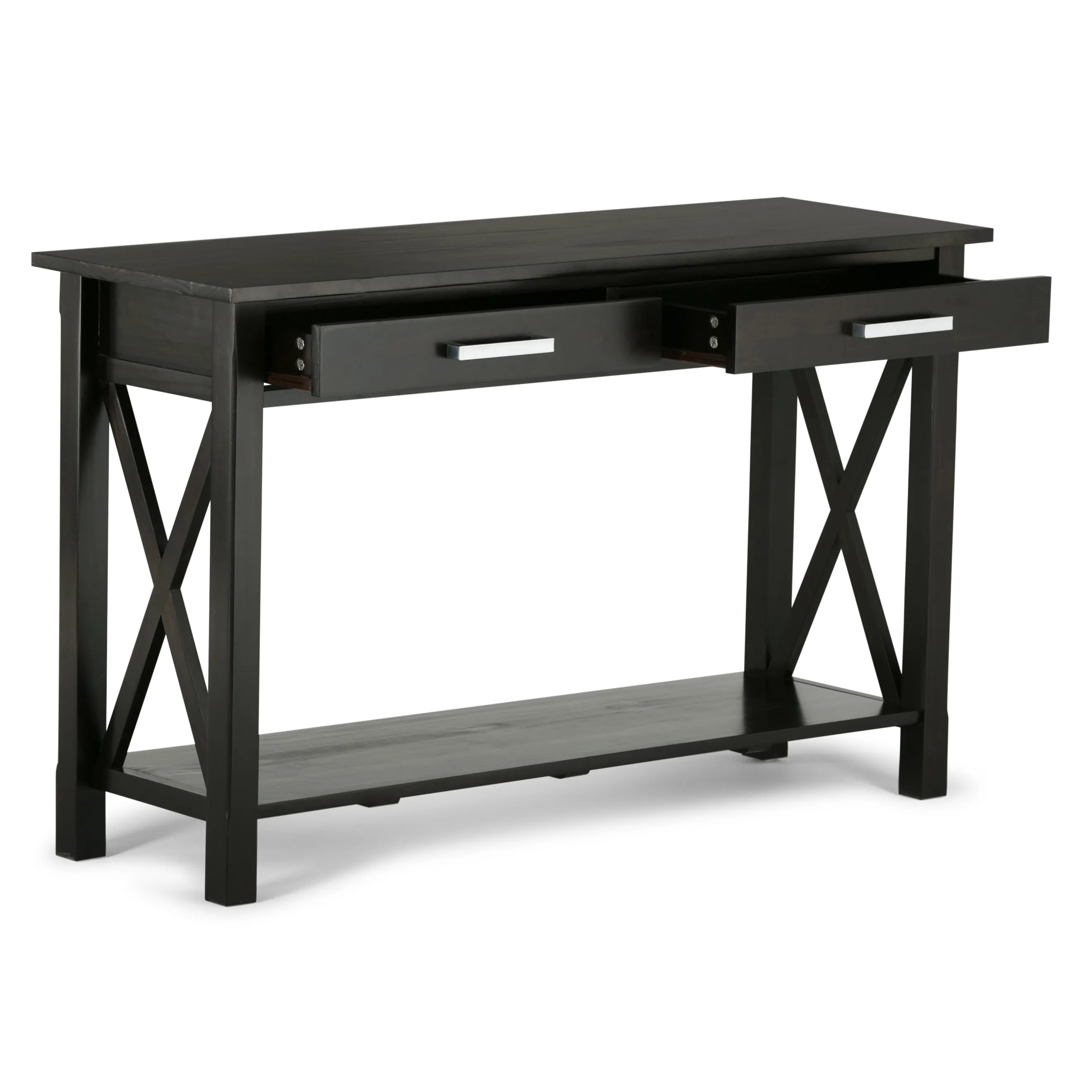 Long and lean. Classic and timeless. The Kitchener Console Table is in a class of its own. It features two large drawers providing ample storage space while the bottom shelf allows you to show off your favorite decorative items. From the living room, family room to the entryway, this Console Table is a great way to gain storage in almost any room in your home...you choose which one.