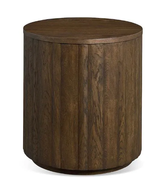 The Andora Round Plinth End Table will drum its way into the heartbeat of your room. Its 18”D provides the tabletop surface you need while the irregular oak tambour wraps your design statement in retro-1970s style and sophistication. The plinth base allows the vertically-reeded oak to make a compact yet uninterrupted statement, one you can finish in your choice of three options.