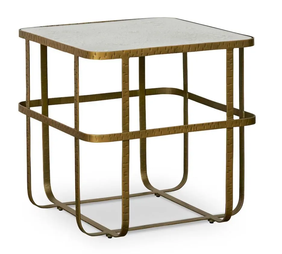 Dressed in gilded, Art Deco-like materials, the Atticus End Table offers fresh and functional glam to your living space. With enough tabletop surface to hold a lamp and sundries, the Atticus End Table is solidly functional. But its base of hand-forged, gold-finished, woven iron is an airy geometry of support. And the luminous reflections of its acid-etched, antiqued mirror top adds an ethereal quality to your entire room. From classic to transitional to modern, there's not a space that the Atticus won't fill with artful purpose. The Atticus Series also features a cocktail table.