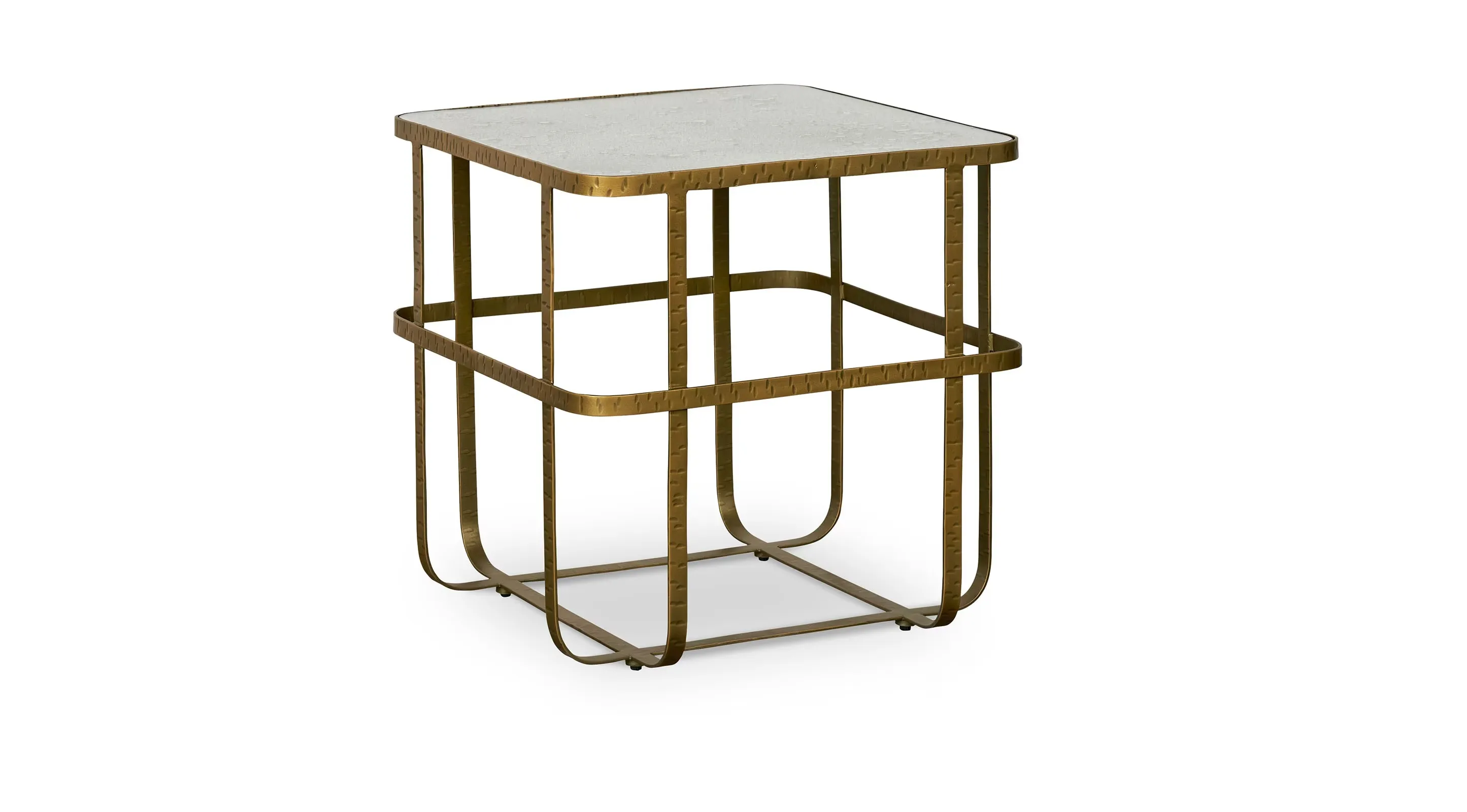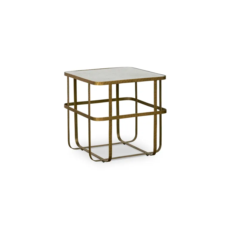Dressed in gilded, Art Deco-like materials, the Atticus End Table offers fresh and functional glam to your living space. With enough tabletop surface to hold a lamp and sundries, the Atticus End Table is solidly functional. But its base of hand-forged, gold-finished, woven iron is an airy geometry of support. And the luminous reflections of its acid-etched, antiqued mirror top adds an ethereal quality to your entire room. From classic to transitional to modern, there's not a space that the Atticus won't fill with artful purpose. The Atticus Series also features a cocktail table.