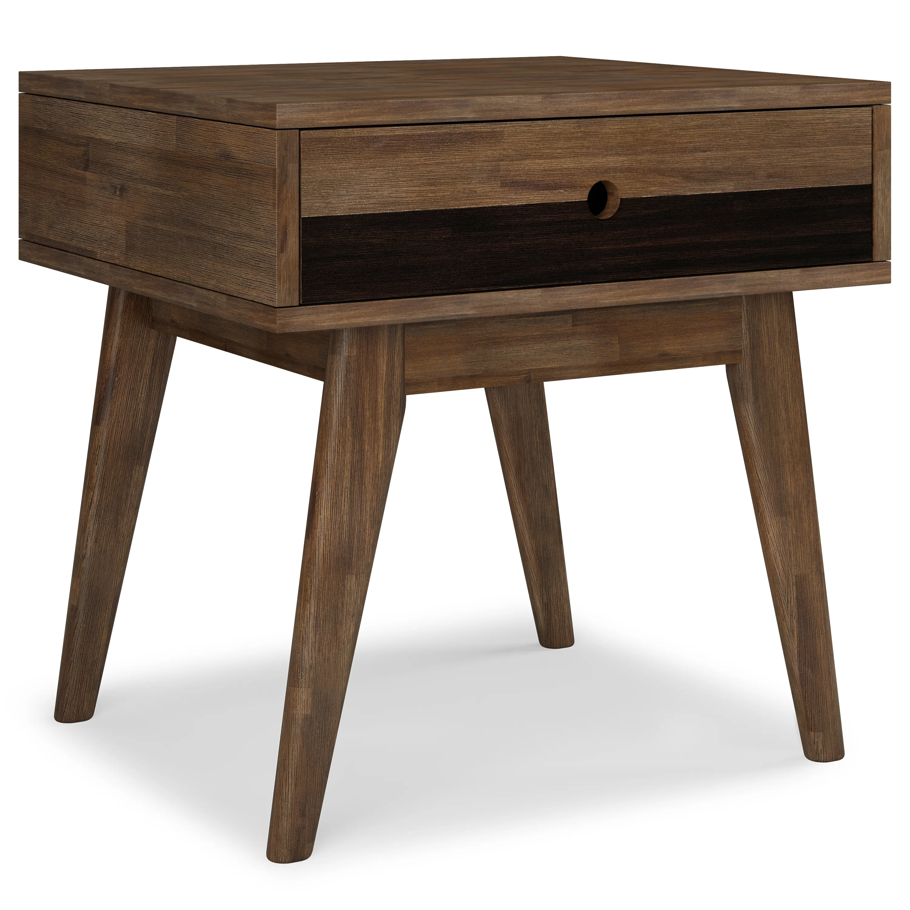 Add style and storage space to your home with the Clarkson End Table. The end table is crafted of solid hardwood with a Rustic Natural Brown finish. This table features one drawer with notched handles so you can store everything from living room necessities to bedside essentials. The Clarkson End Table will add a contemporary mid-century look to your living space. This accent table can be used beside your sofa, chair, or bed, or in any other room in your house.