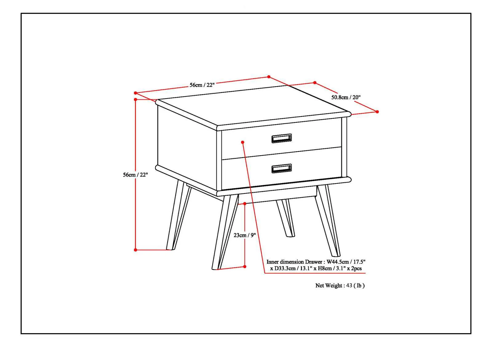 Storage space is always a good thing. This modern Draper Mid Century Side Table with two roomy drawers has lots of space to stash all of your sofa side or bedside necessities. Its stylish yet simple lines will complement most any decor.