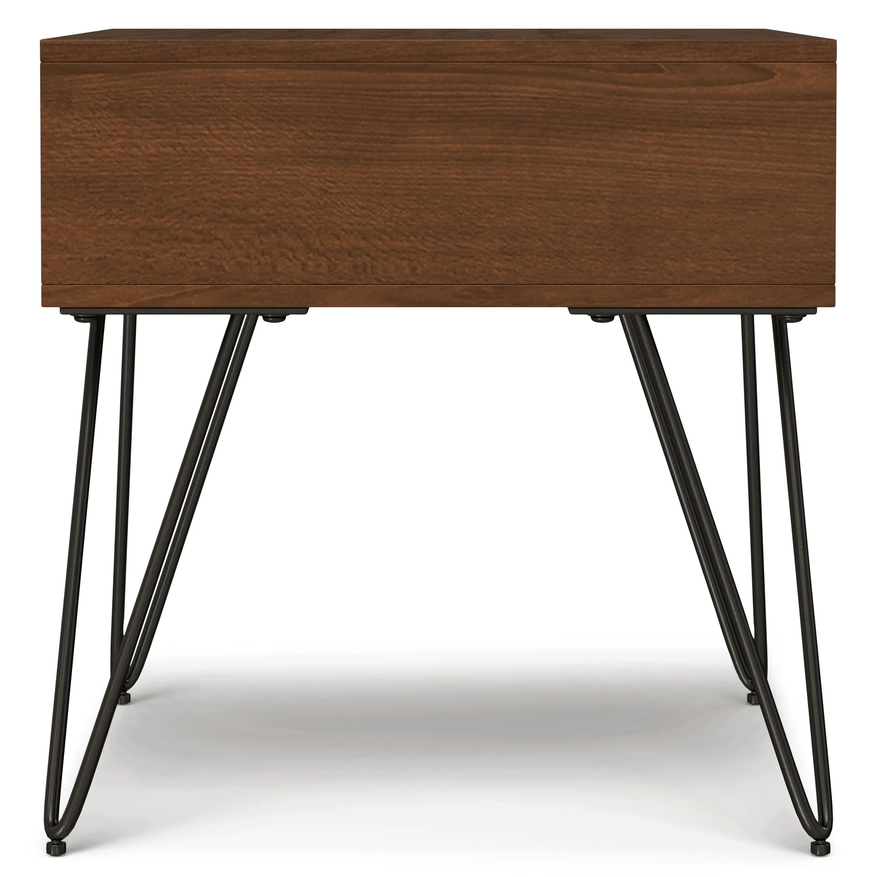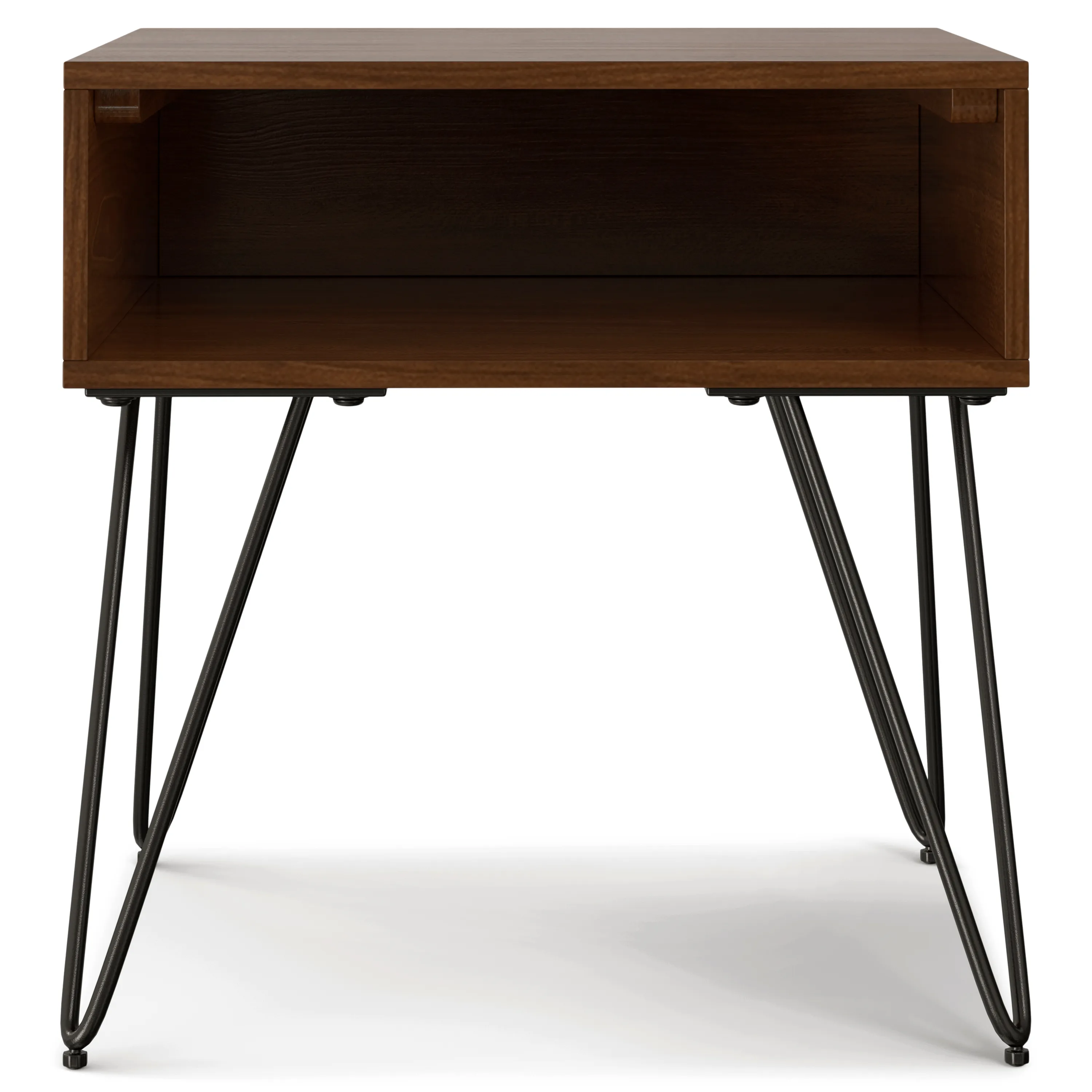 Accentuate your living space with the trendy Hunter End Table. The metal hairpin legs and wood top are the perfect combination to create an industrial, modern piece. The open compartment provides plenty of space for storage. Whether you need a place for your favorite book, night lamp or drink – this is the piece of furniture for you.