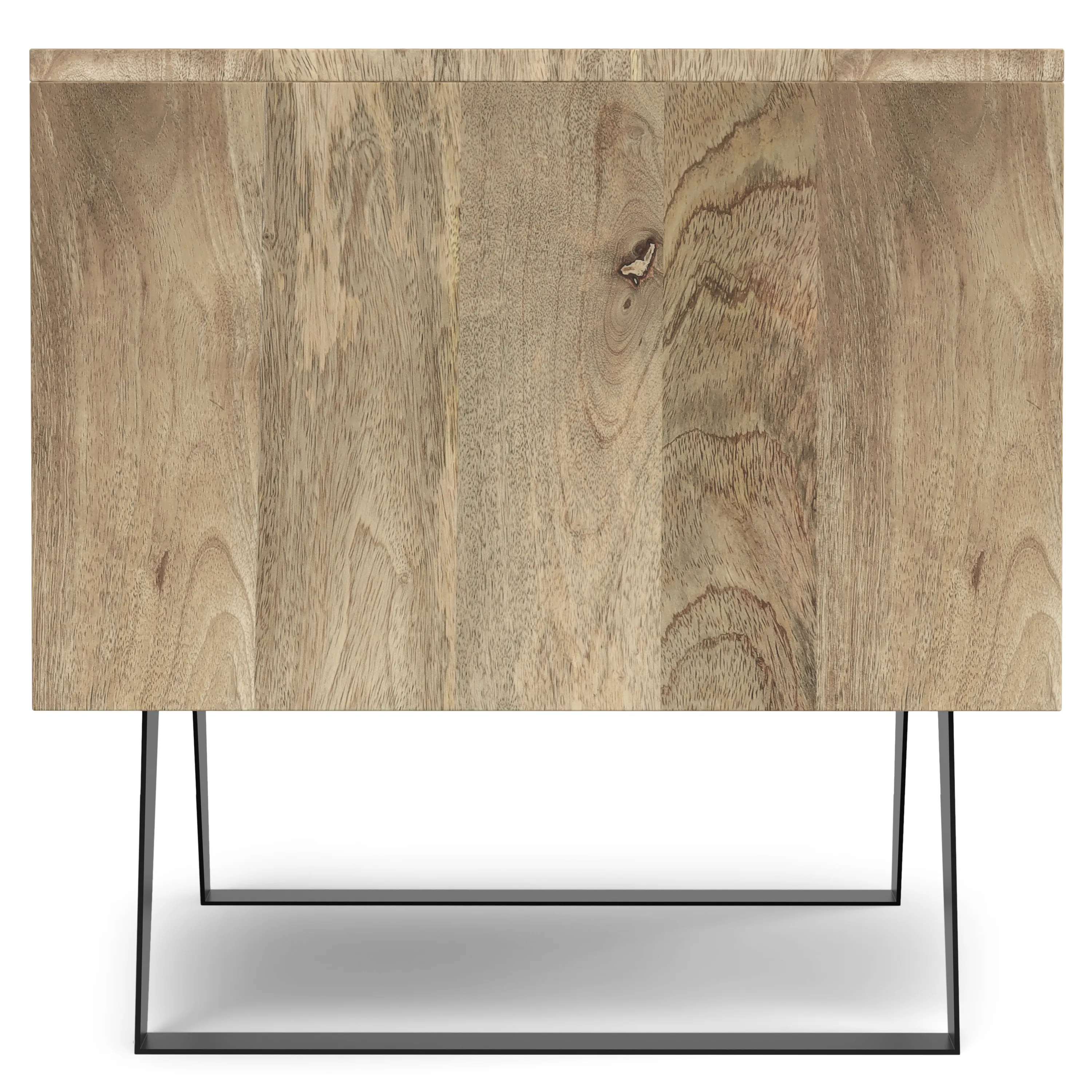• Modern Industrial design features discreet hand pulls and solid metal angled legs for reliable support