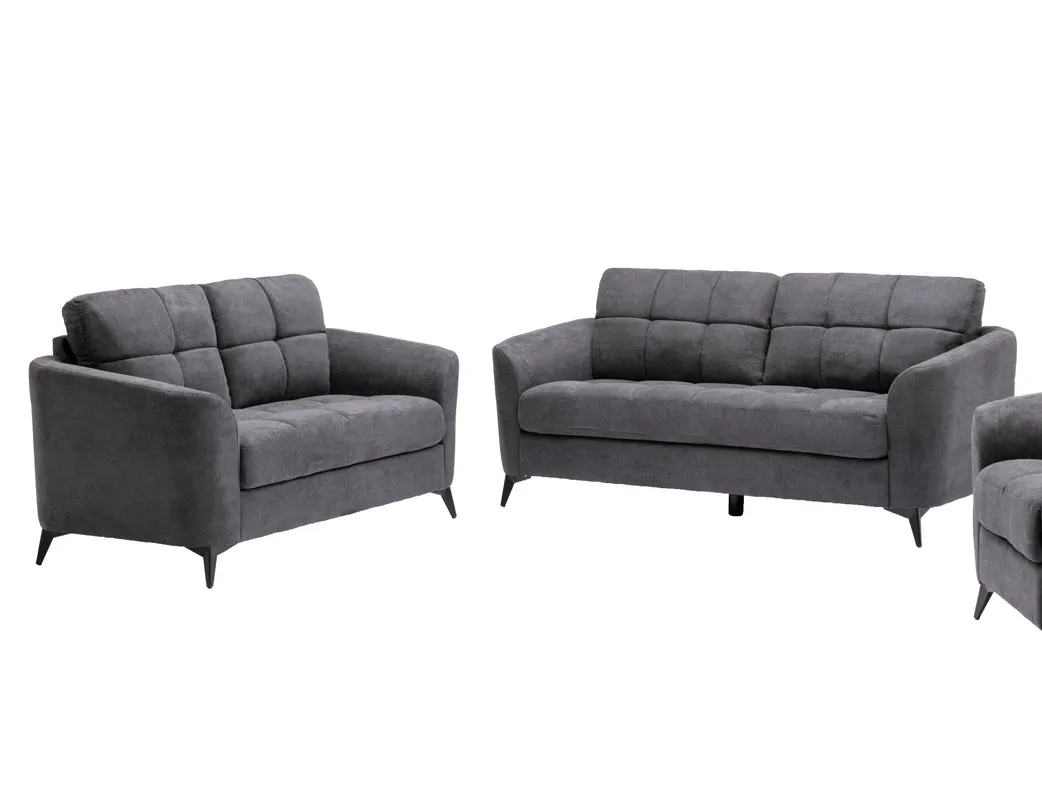 Combining world-class comfort and sophisticated style, our living room set, boasts a tufted cushion design and sleek metal legs. Whether for formal gatherings or family relaxation, its great look caters to both occasions. The comfortable fabric ensures guests remain satisfied and exude an elegant appearance, while the black metal legs seamlessly blend into various rug selections. With tufted cushions and pocket coil seating, this set provides a luxurious and supportive seating experience for your living space.