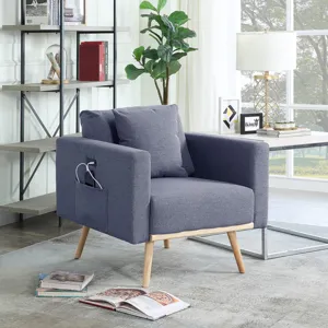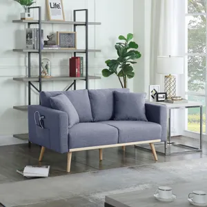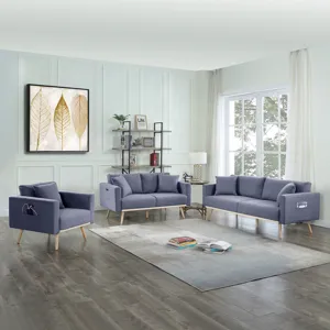 Easton - Linen Fabric Living Room Set With USB Charging Ports Pockets And Pillows (Set of 2)