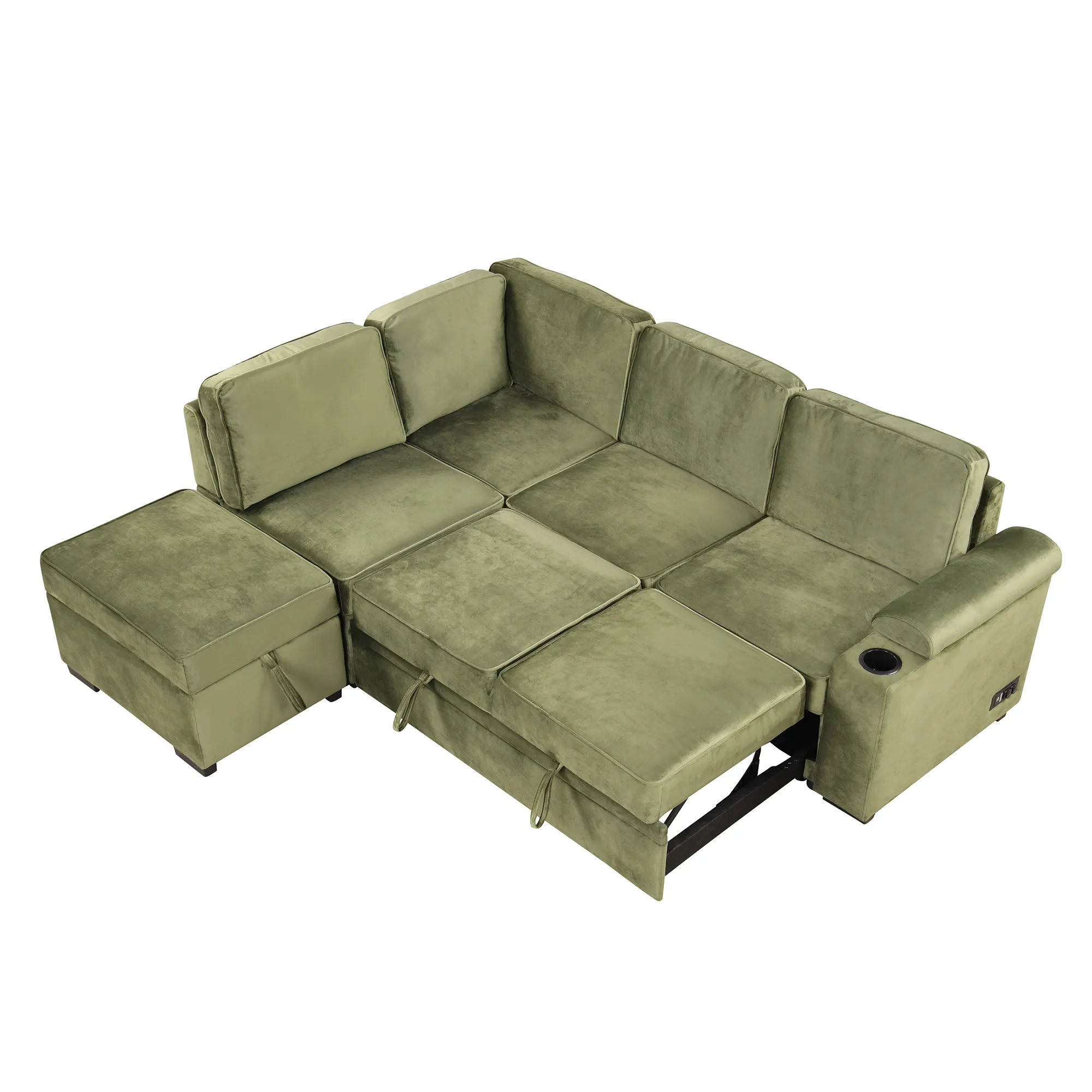 Sleeper Sofa Bed, 2 In 1 Pull Out Sofa Bed L Shape Couch With Storage Ottoman For Living Room, Bedroom Couch And Small Apartment - Green