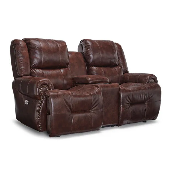 Genet Leather/Vinyl Power Tilt Headrest Space Saver Console Loveseat