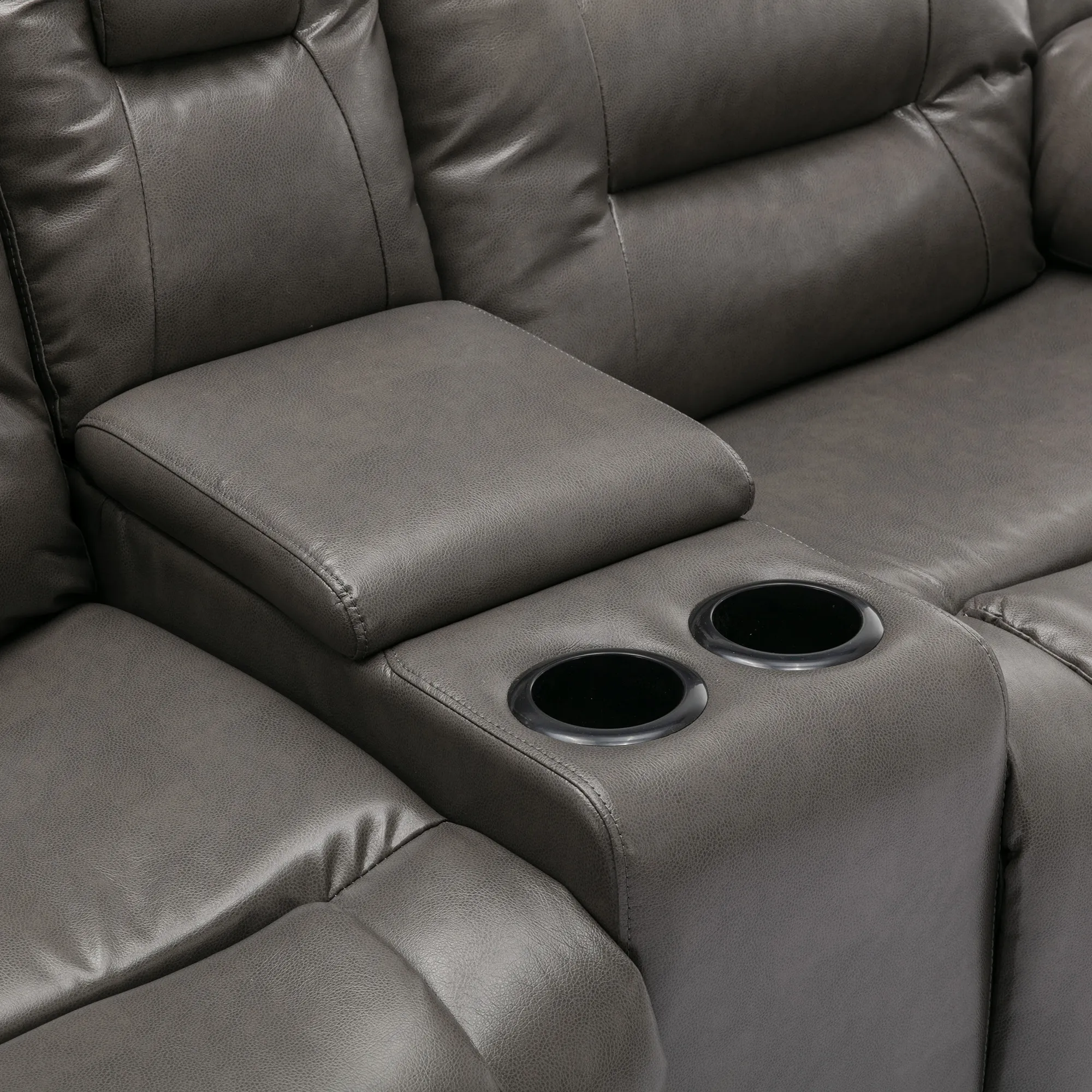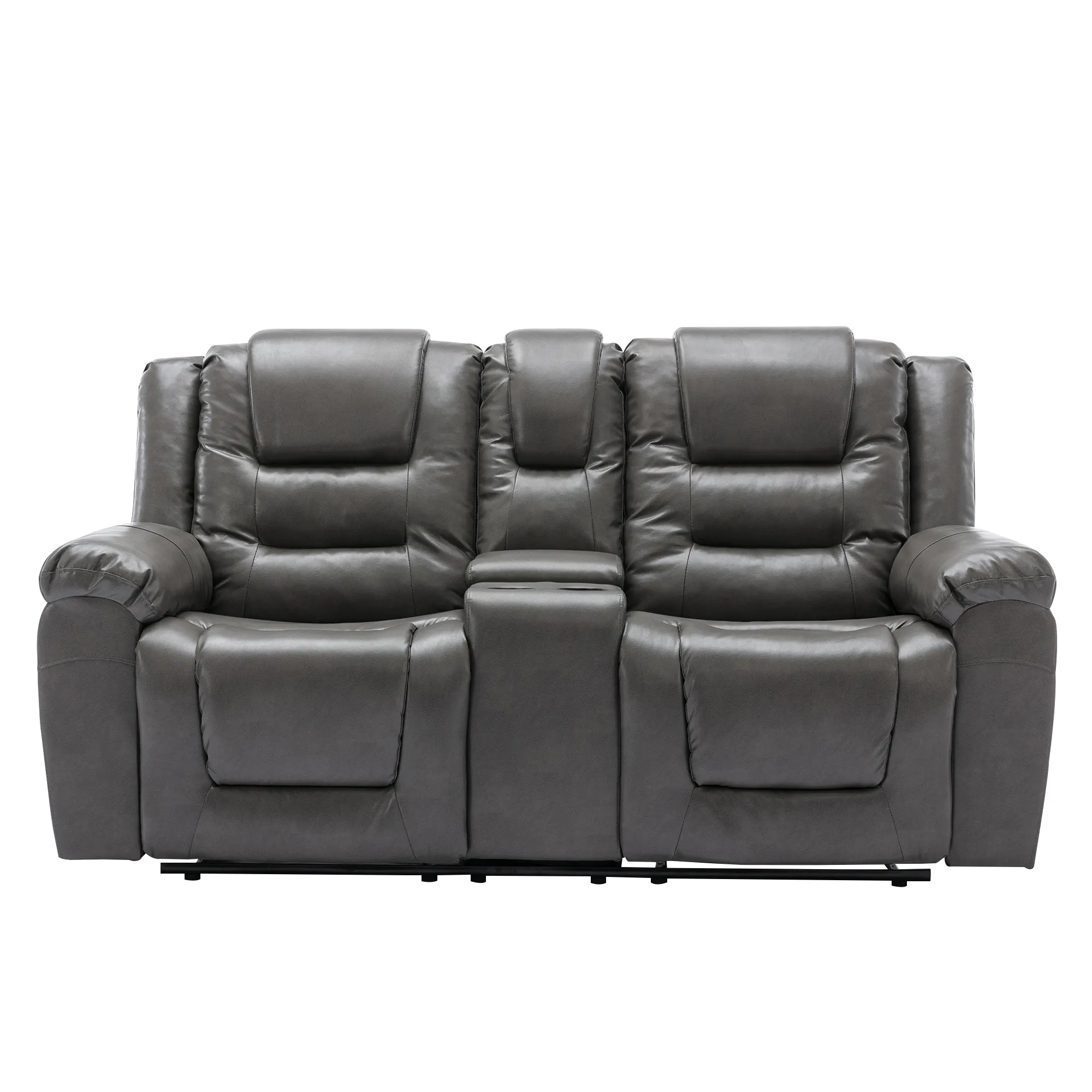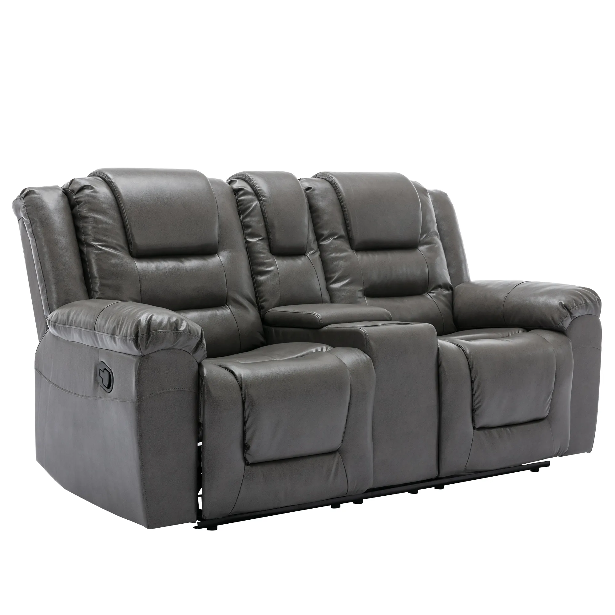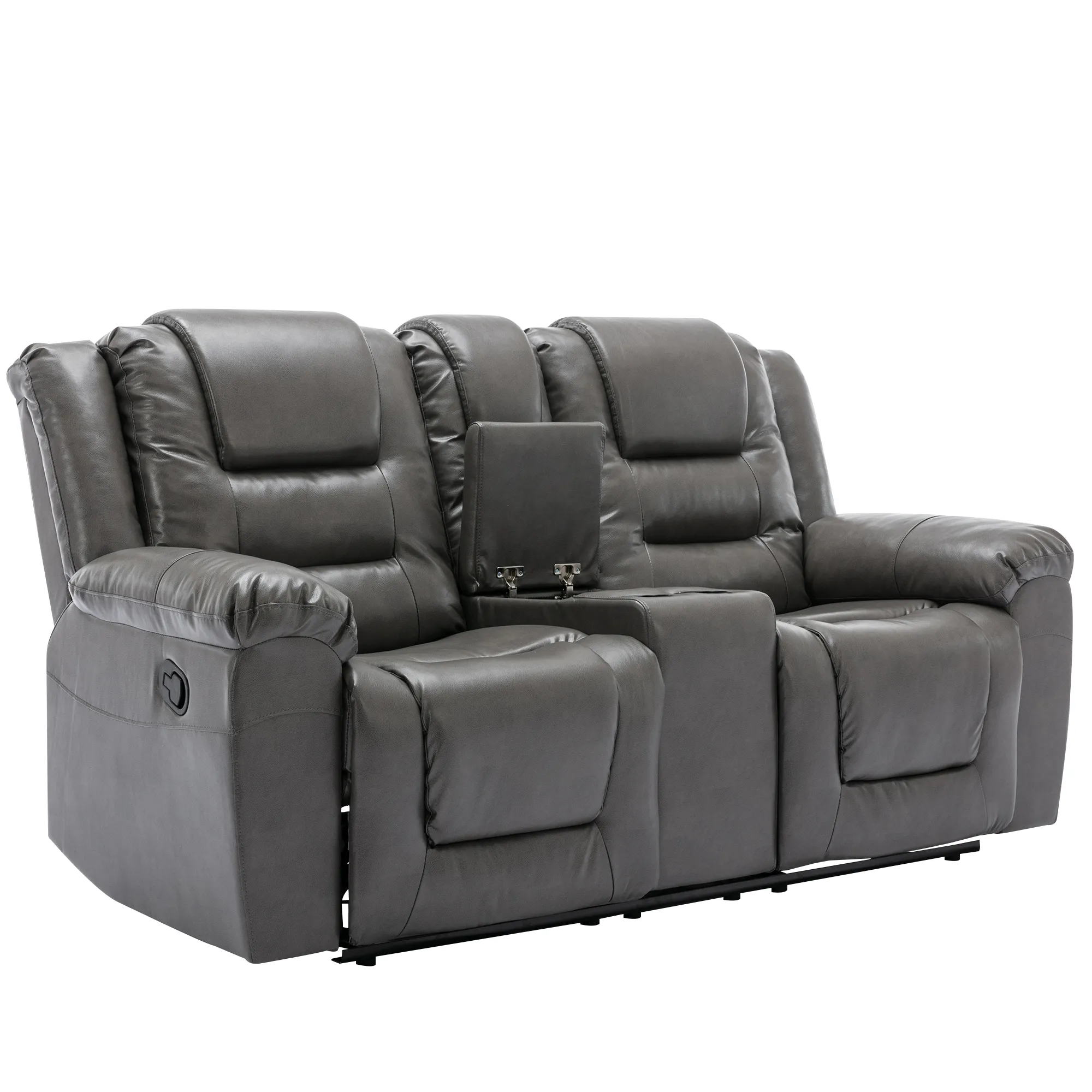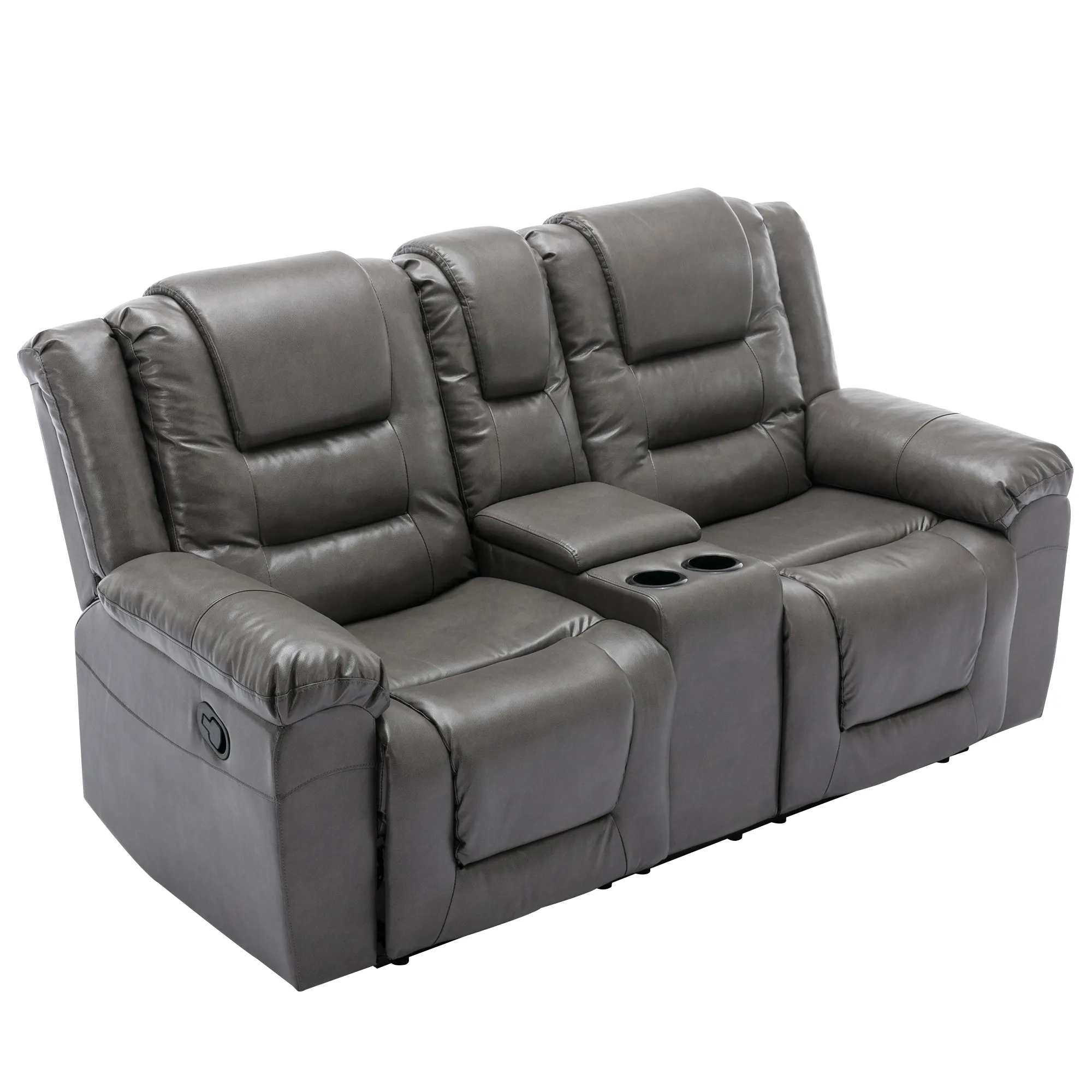 2 Seater Home Theater Recliner Manual Recliner Chair With A Storage Box And Two Cup Holders For Living Room - Gray