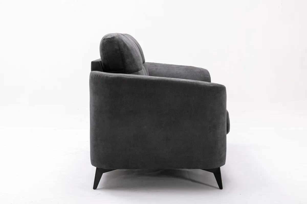 Blending world-class comfort with exquisite style, our loveseat showcases a tufted cushion design and sleek black metal legs. Perfect for formal gatherings and equally fitting for family lounging, its comfortable fabric ensures guests stay satisfied while exuding an elegant allure. With pocket coil seating ensuring durability, this loveseat seamlessly integrates into a variety of interiors, its metal legs effortlessly merging with an array of rugs to elevate any space's aesthetic appeal.