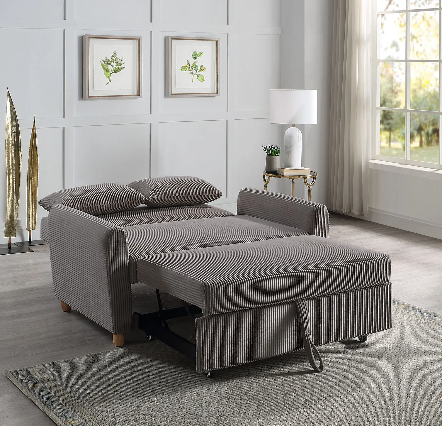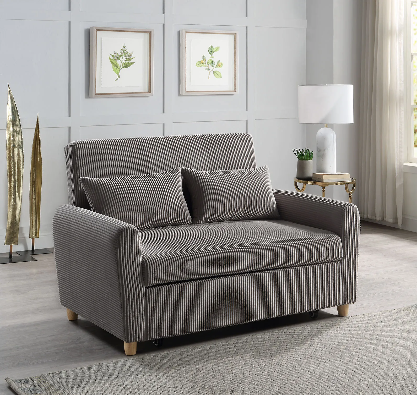 Justine - Corduroy Convertible Sleeper Loveseat - Brown