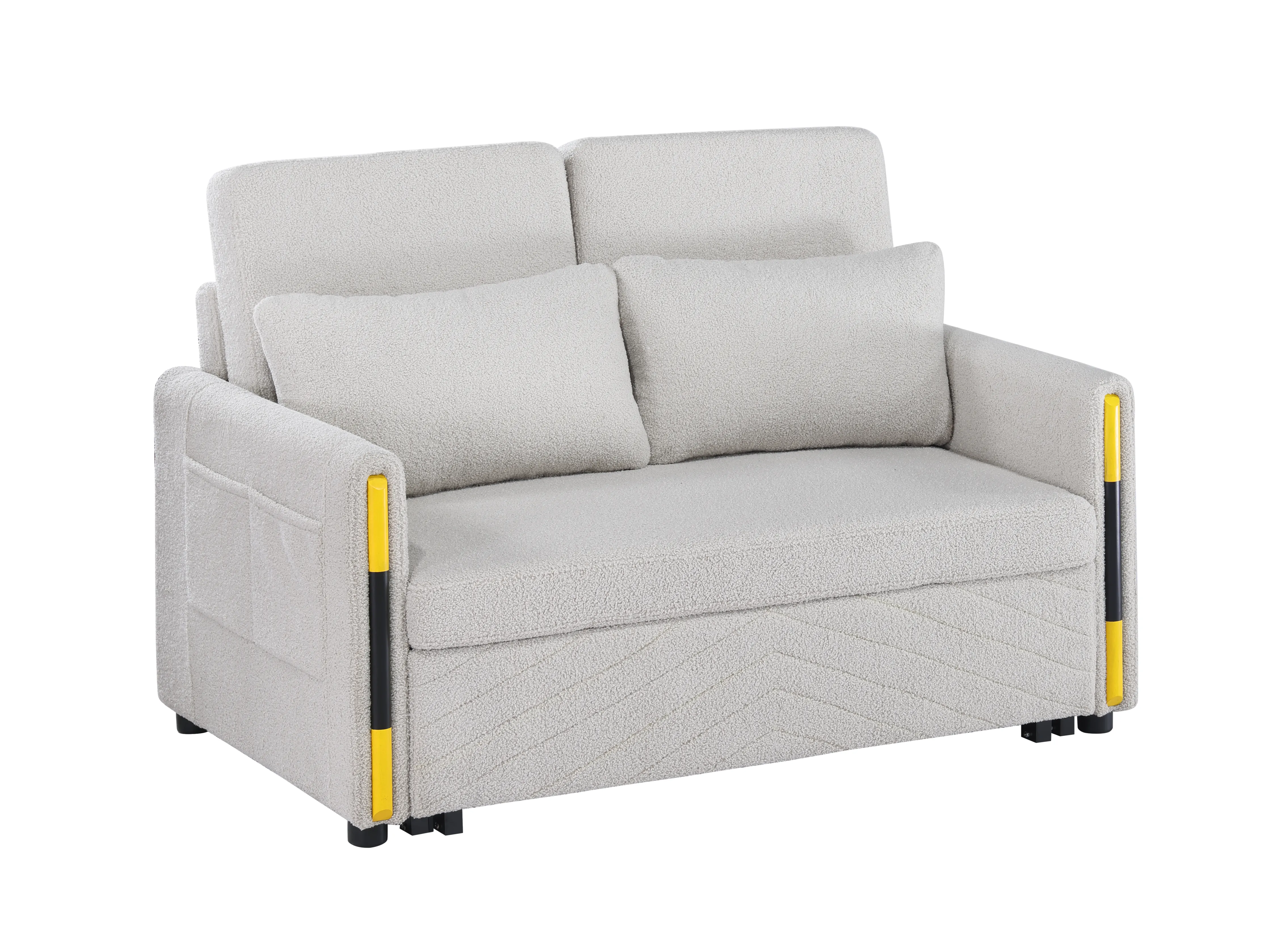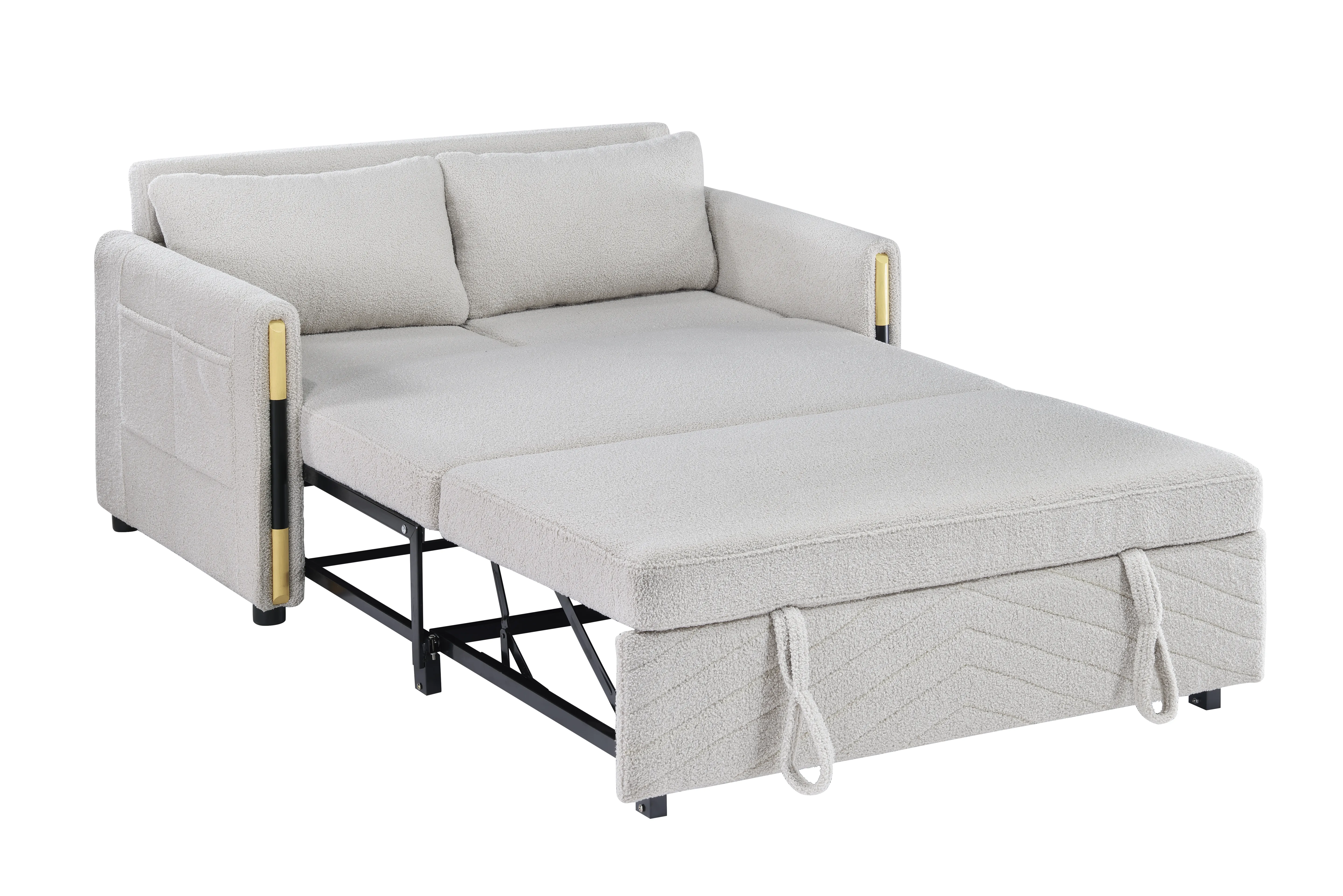 Percy - Teddy Velvet Sleeper Loveseat With Dual-Pull Sleeper Design - Beige