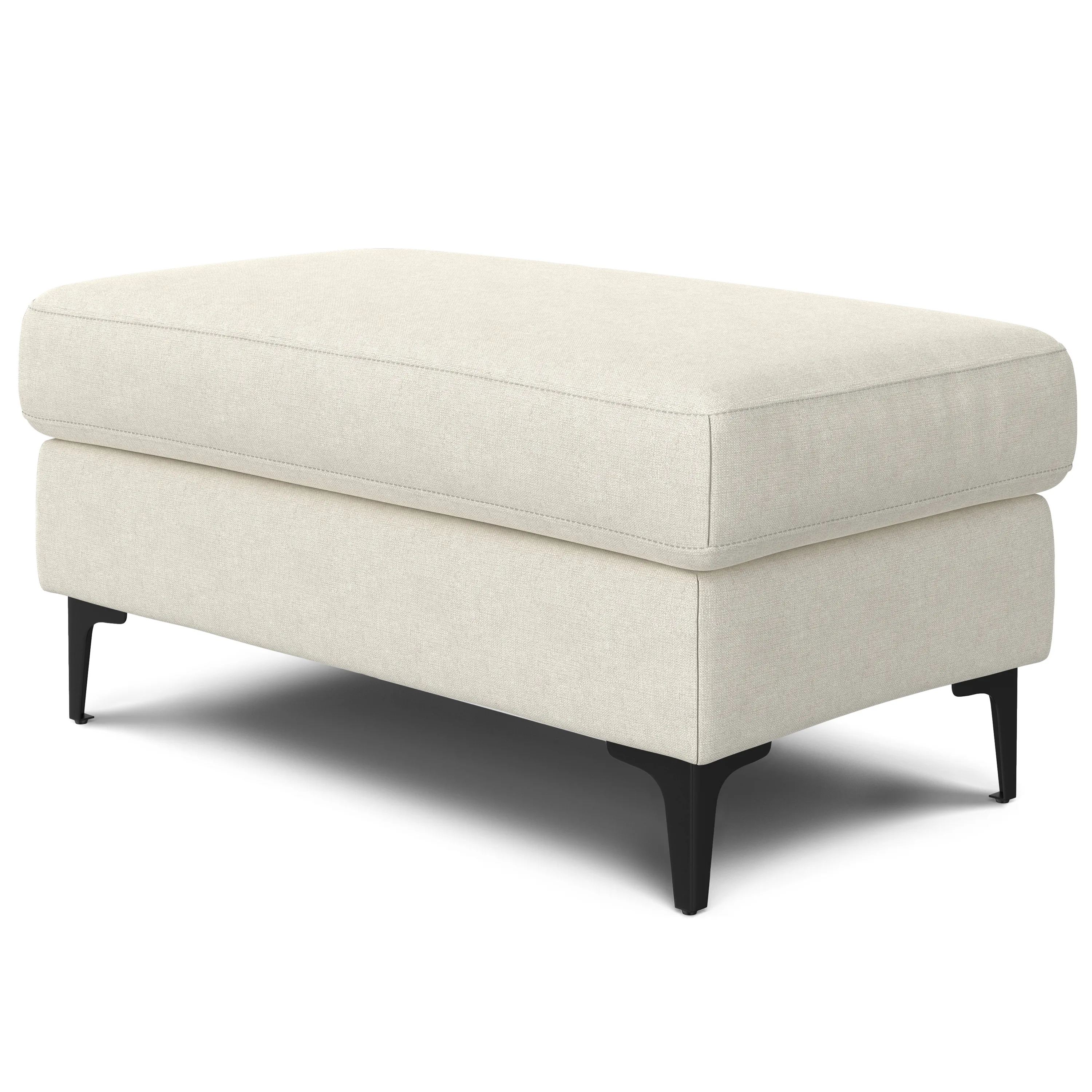 With tall, refined metal legs and clean, mid-century modern styling, the Ava Ottoman elevates the elegance of a living space. Plus, it’s upholstered in easy-care performance fabric, making it as practical as it is stylish. Impressively multifunctional, this living room ottoman provides a comfy place to sit or a convenient table space for books, games, and snacks. Want to relax? Position this ottoman bench against a couch, loveseat, or chair to rest your feet after a long day. To give your living room or family room a complete look, pair this ottoman coffee table with one of our matching Ava Sofas.