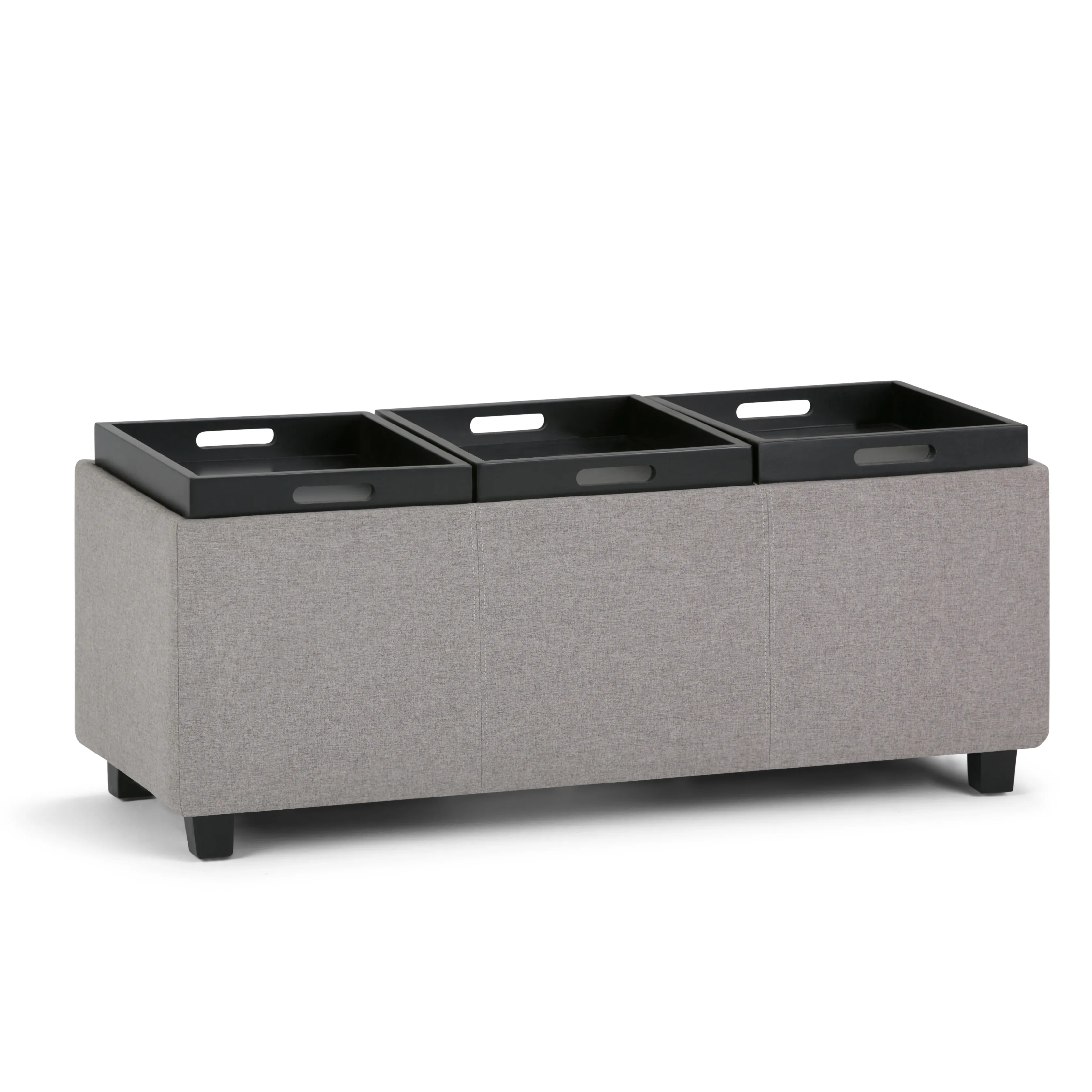 Why sacrifice function for beauty. For a stylish solution to your storage and serving needs, look no further than the Avalon Extra Large Rectangular Storage Ottoman. The unit is made from durable fabrics and comes with three flip over serving trays and lots of storage space. This attractive ottoman is extra strong and durable and features a beautiful stitched exterior and large storage interior. Whether you use this ottoman in your entryway, living room, family room, basement or bedroom, it will allow you to hide away all that mess and eat your food in comfort.