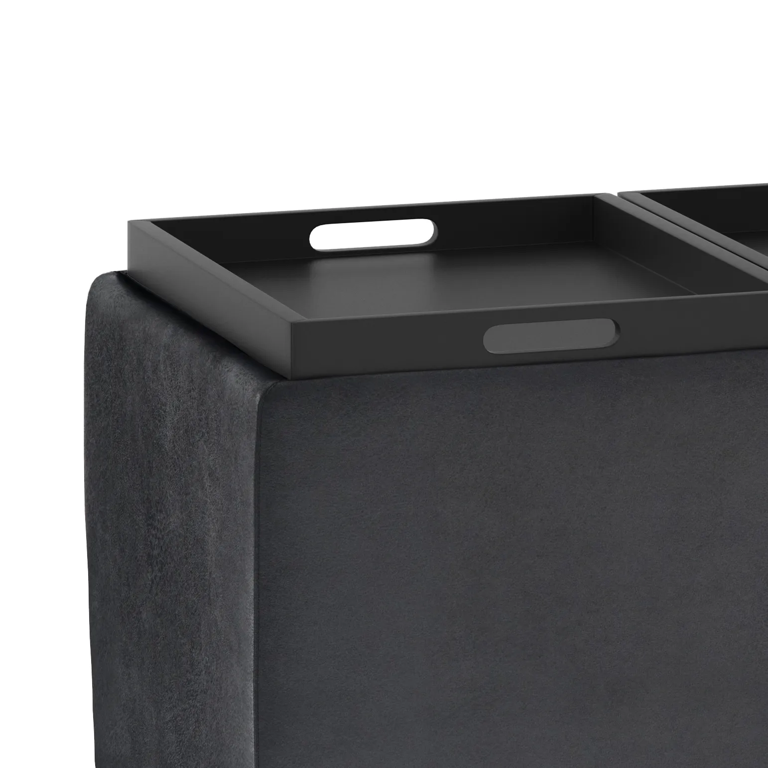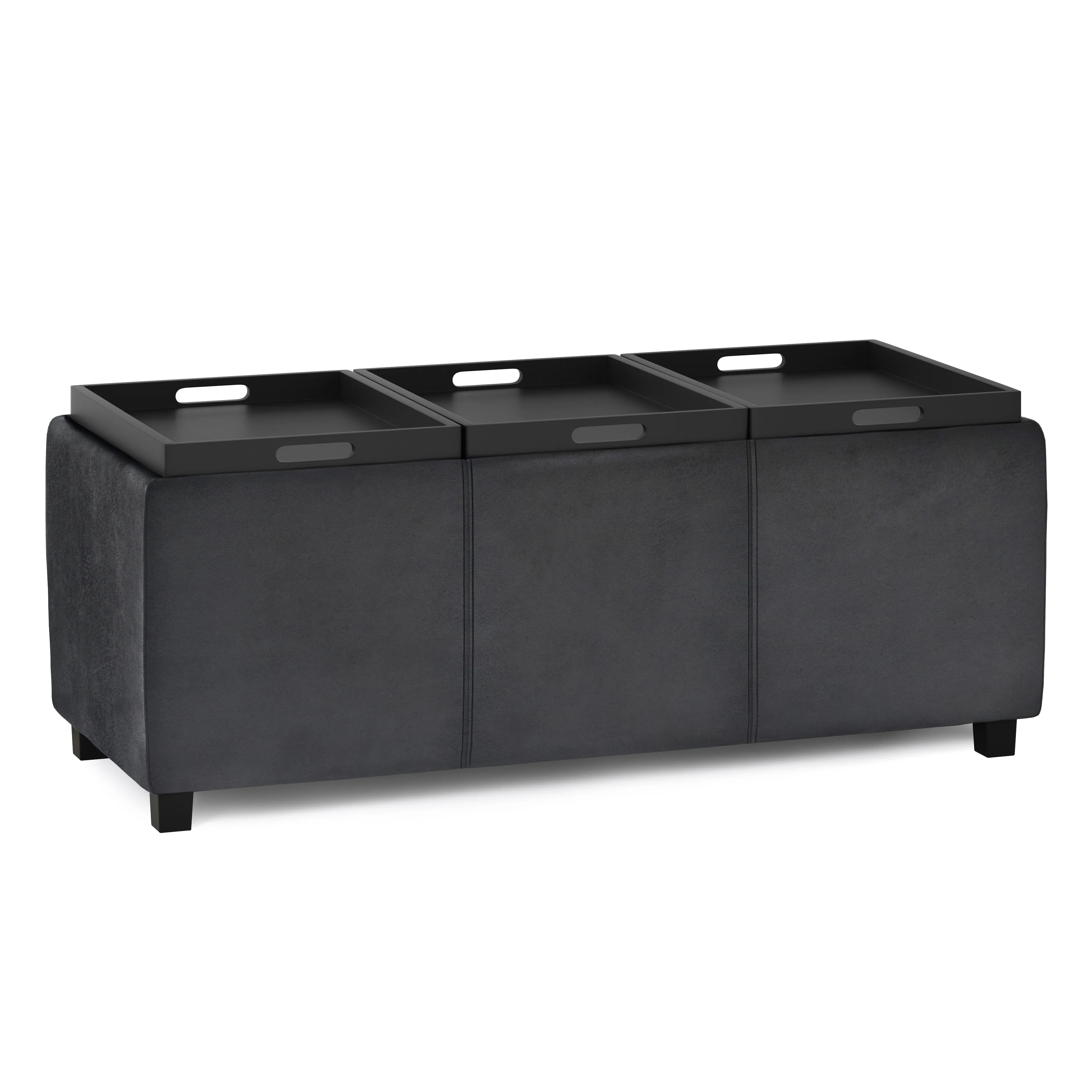 Why sacrifice function for beauty. For a stylish solution to your storage and serving needs, look no further than the Avalon Extra Large Rectangular Storage Ottoman. The unit is made from durable fabrics and comes with three flip over serving trays and lots of storage space. This attractive ottoman is extra strong and durable and features a beautiful stitched exterior and large storage interior. Whether you use this ottoman in your entryway, living room, family room, basement or bedroom, it will allow you to hide away all that mess and eat your food in comfort.