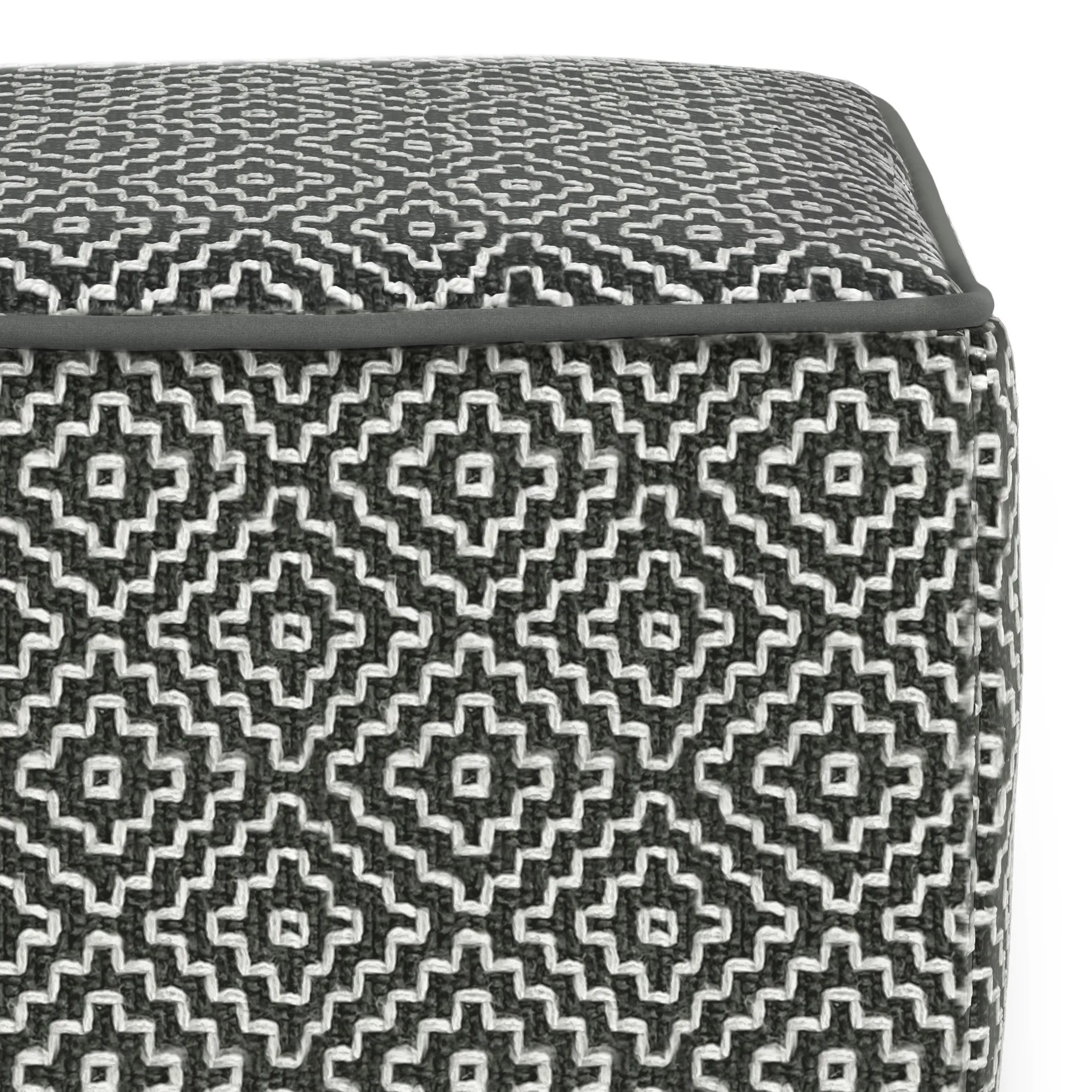 Briella - Square Woven Outdoor / Indoor Pouf - Grey / White