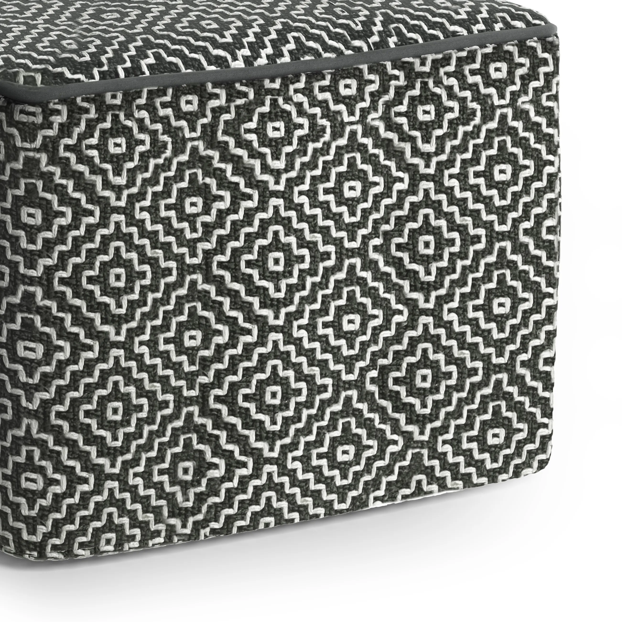 Add panache and color to your outdoor or indoor living space with Briella Square Woven Outdoor/ Indoor Pouf. This pouf is perfect for use as a footstool or as extra seating. Featuring a neutral grey and white pattern this square-shaped pouf boasts durable and easy-care woven polyester that is water and UV resistant. This versatile pouf is sure to enhance the style of your decor.