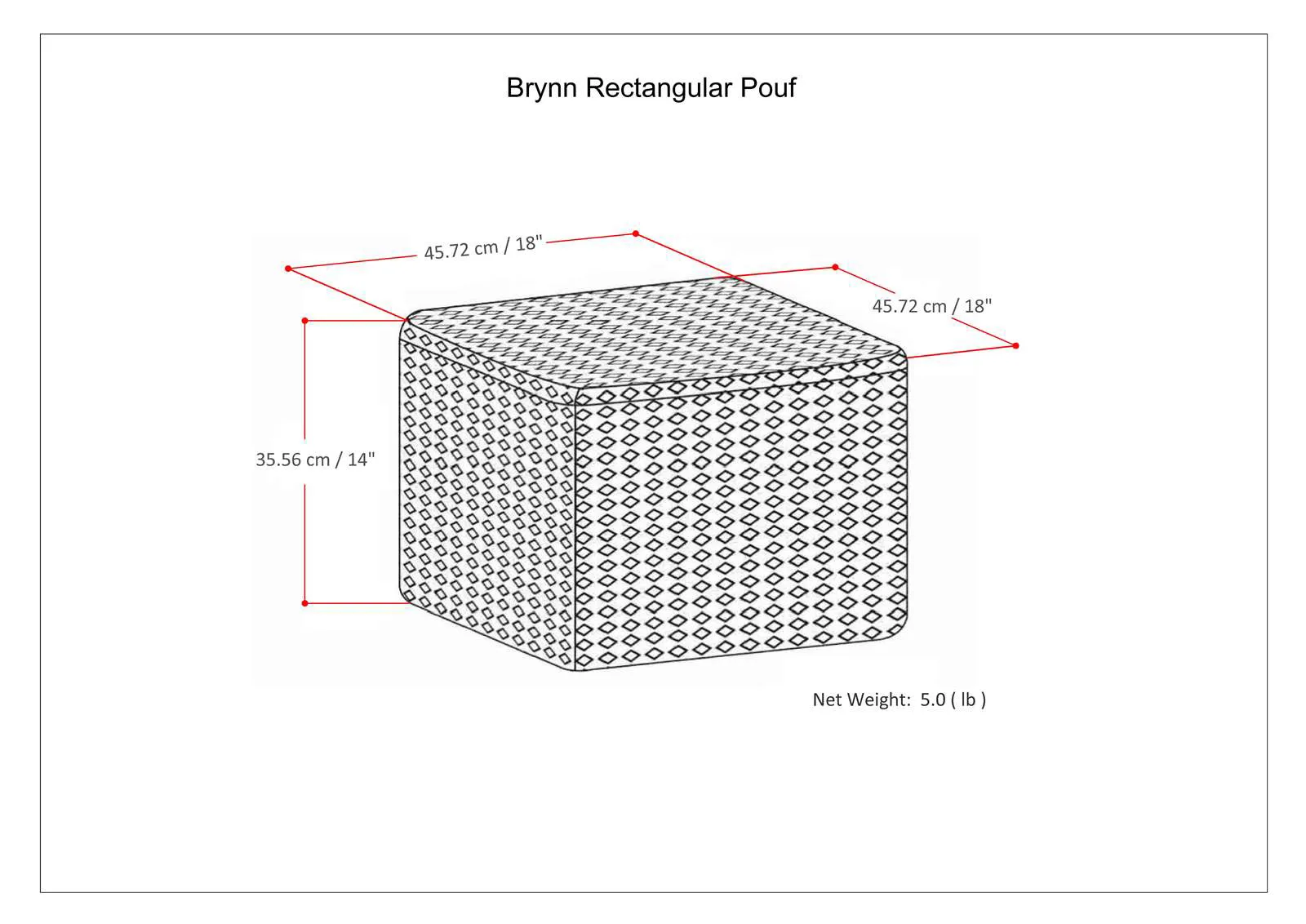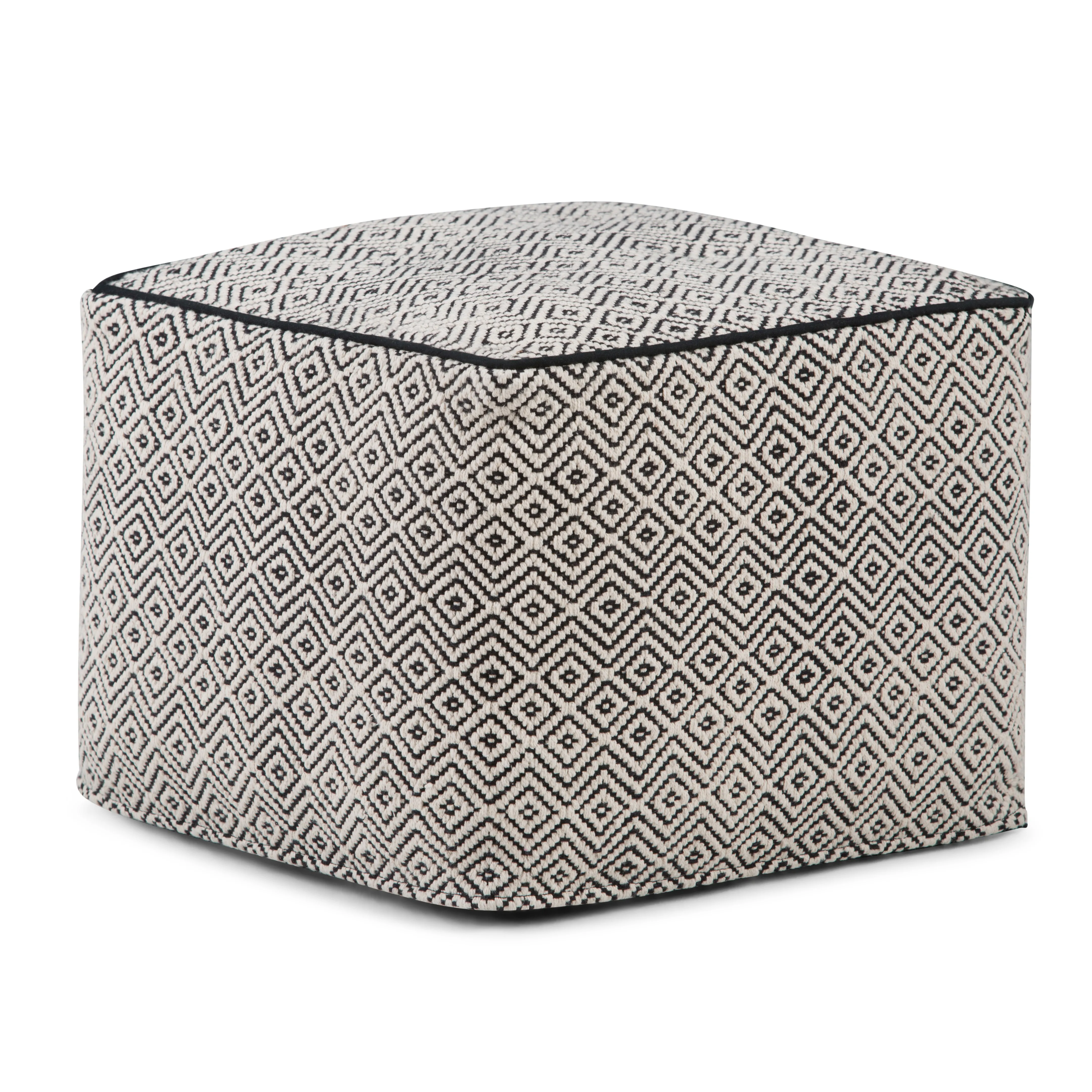 Make a tasteful addition to your home decor with the Brynn Square Pouf. The pouf is upholstered in a hand-woven geometric pattern and trimmed with piping detail. Can be used as an ottoman, extra seating or as an accent piece. This versatile pouf is sure to enhance the style of your space.
