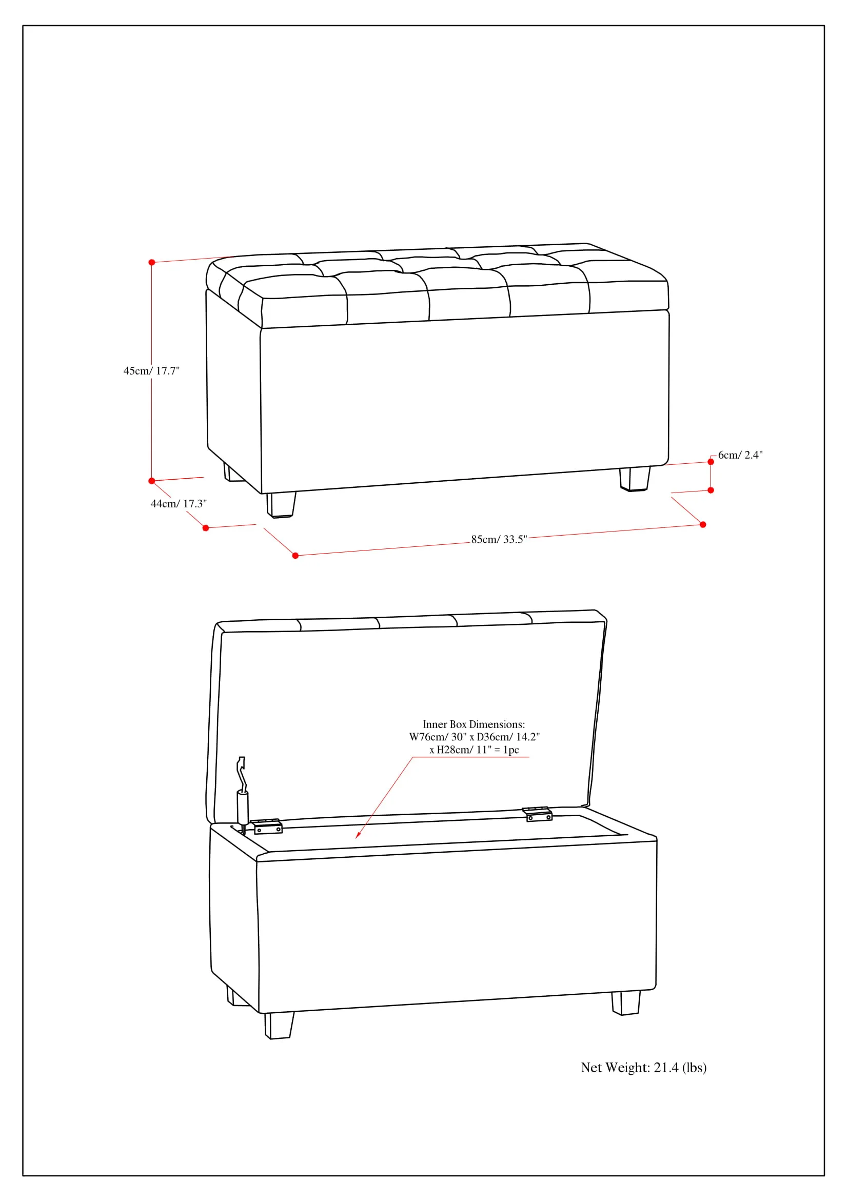 Why sacrifice function for beauty. For a stylish solution to your storage needs, look no further than the Cosmopolitan Rectangular Storage Ottoman. The unit is made from durable fabrics and is extra strong featuring a beautiful tufted exterior and large storage interior. Whether you use this ottoman in your entryway, living room, family room, basement or bedroom, it will allow you to hide away all that mess.