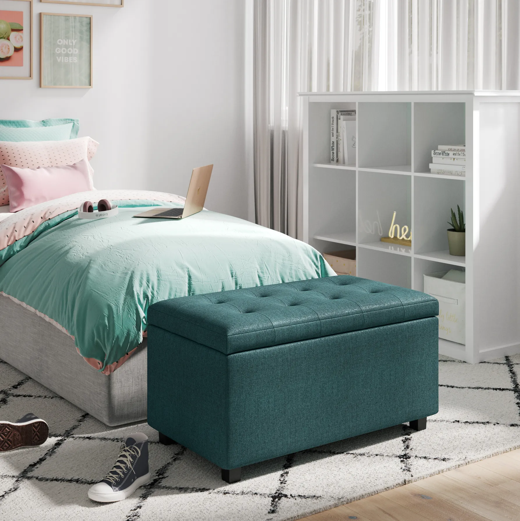 Why sacrifice function for beauty. For a stylish solution to your storage needs, look no further than the Cosmopolitan Rectangular Storage Ottoman. The unit is made from durable fabrics and is extra strong featuring a beautiful tufted exterior and large storage interior. Whether you use this ottoman in your entryway, living room, family room, basement or bedroom, it will allow you to hide away all that mess.