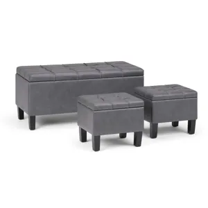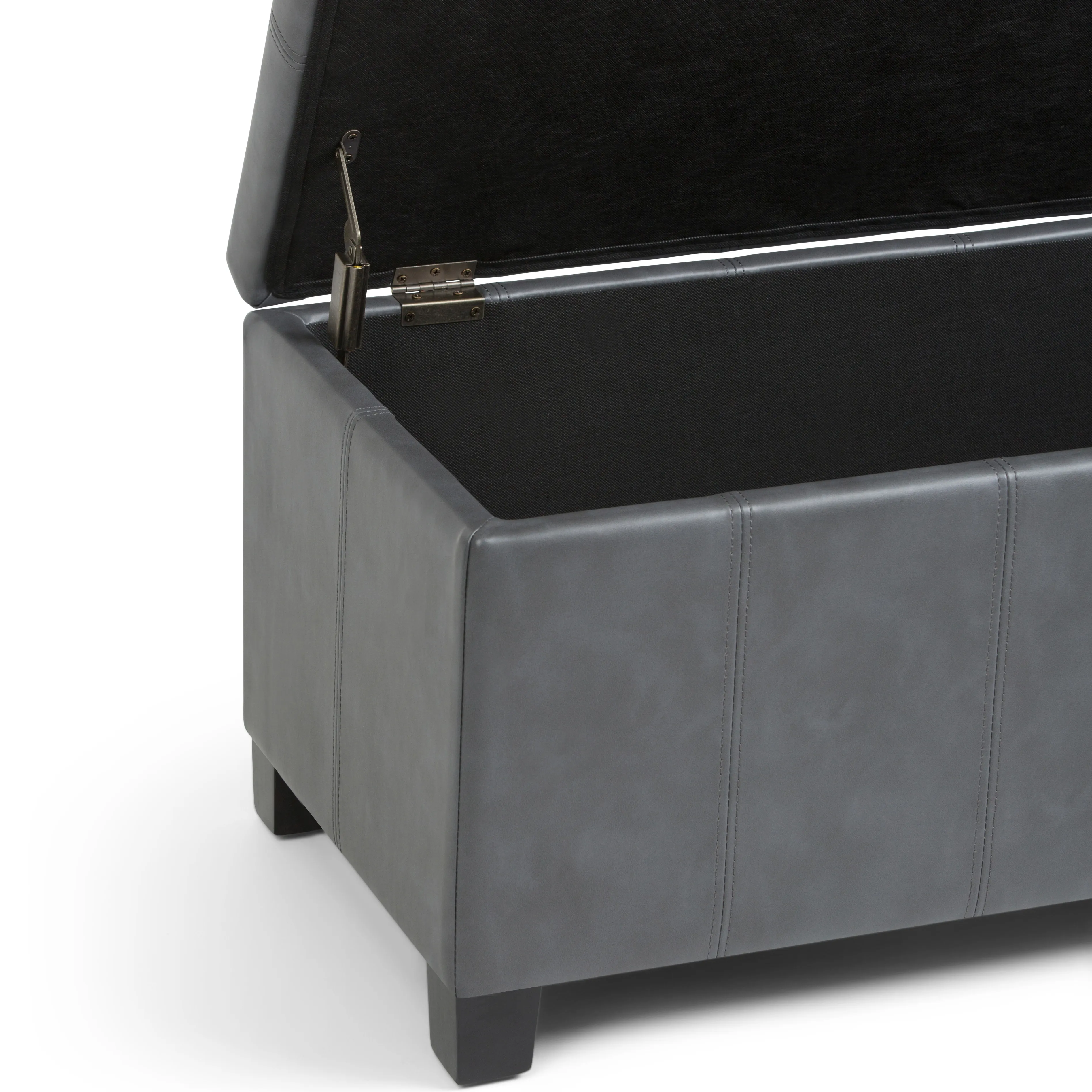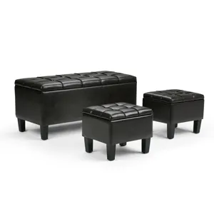 For a stylish solution to your storage needs, the Dover Rectangular Storage Ottoman features a beautiful stitched look with a lift up lid and large interior storage space. The unit is made from durable fabrics and is extra strong and sturdy. Whether you use this ottoman in your entryway, living room, family room, basement or bedroom, it will allow you to hide away all that mess.