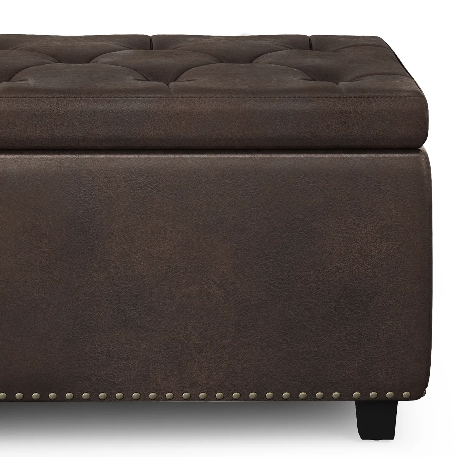 Clutter and junk everywhere. What you need is a well made storage solution that is both functional and beautiful. The Hamilton Large Rectangular Storage Ottoman Bench is durable, strong and sturdy. It features a beautiful tufted exterior, nail head trim, lift up lid and large storage interior. Whether you use this ottoman in your entryway, living room, family room, basement or bedroom, it will allow you to hide away all that mess.
