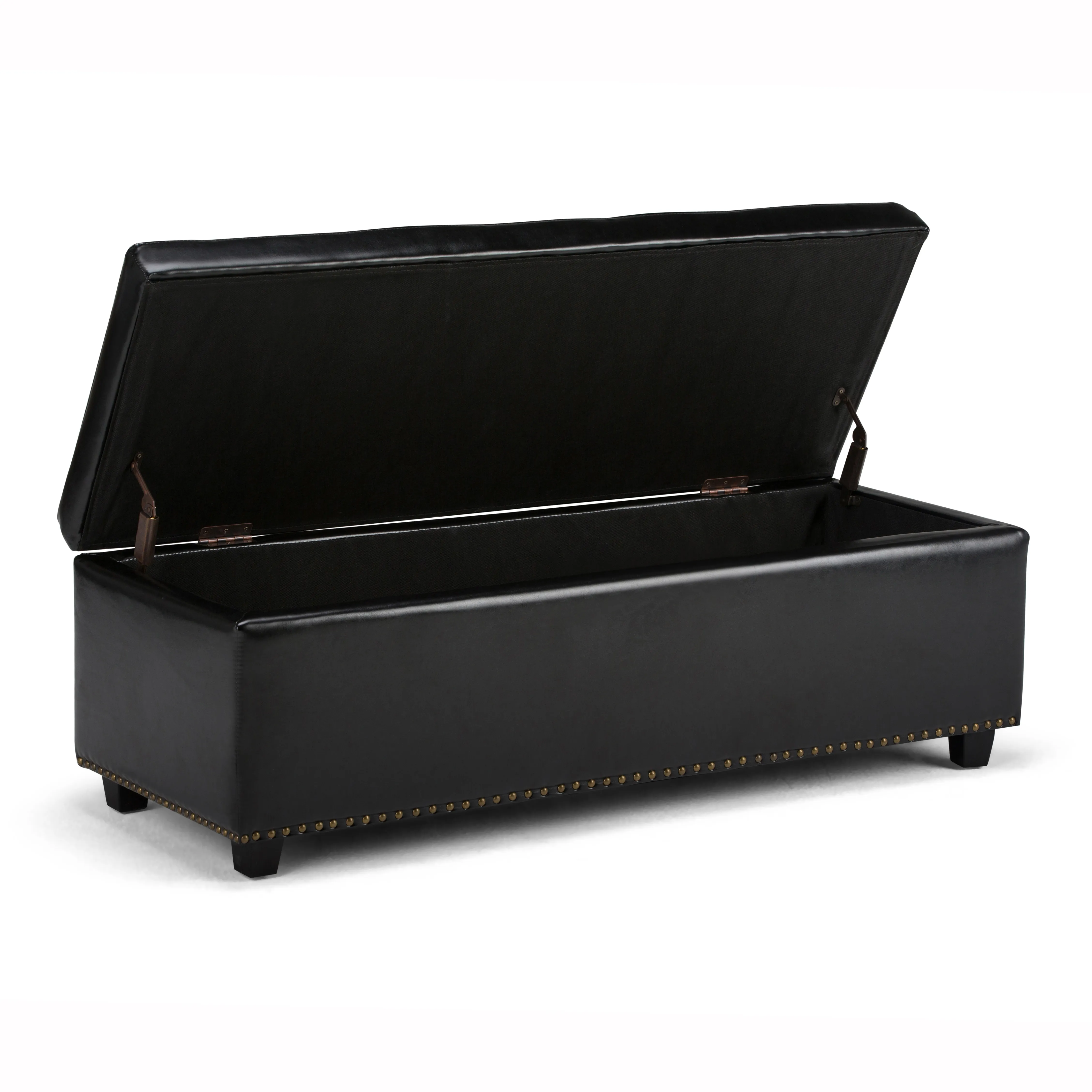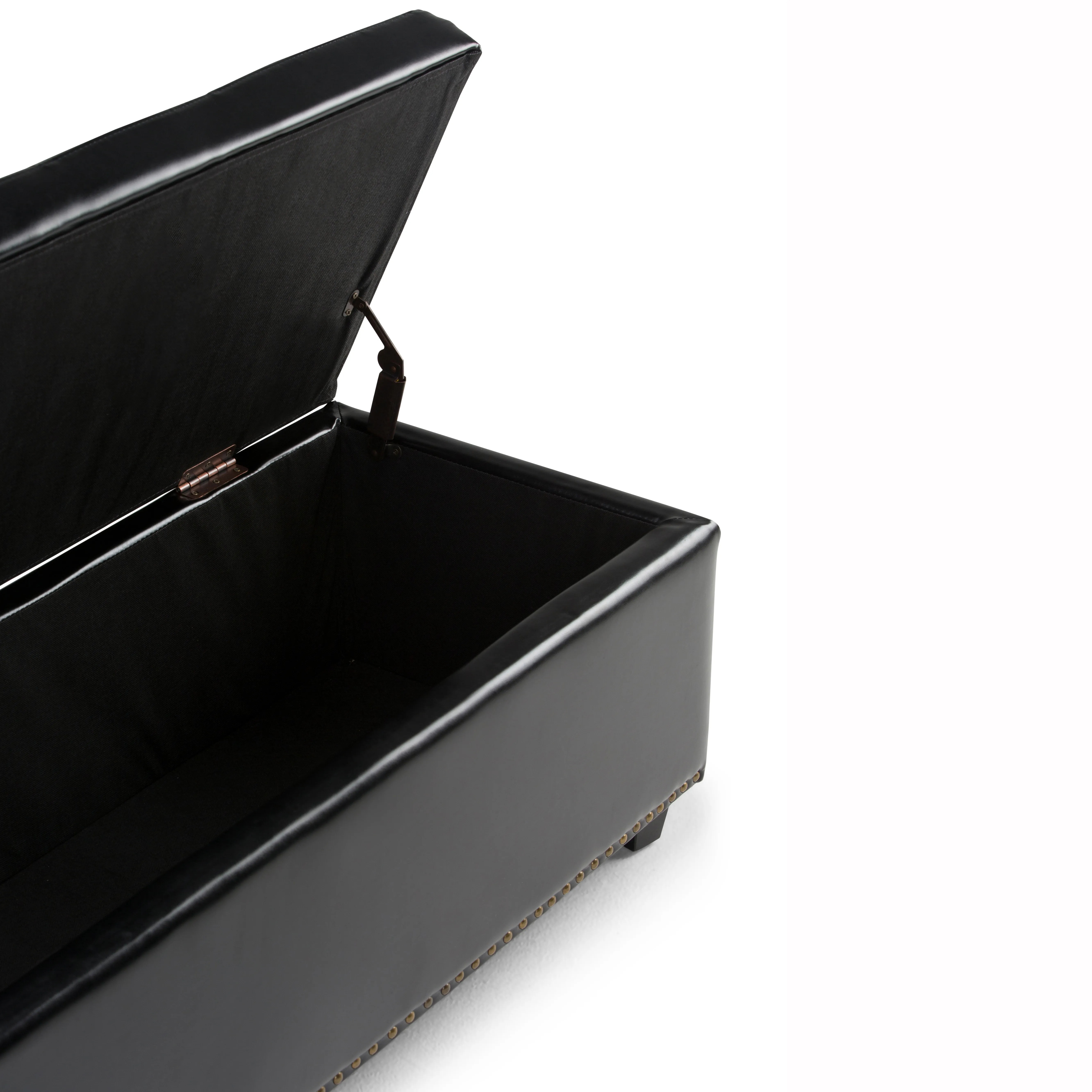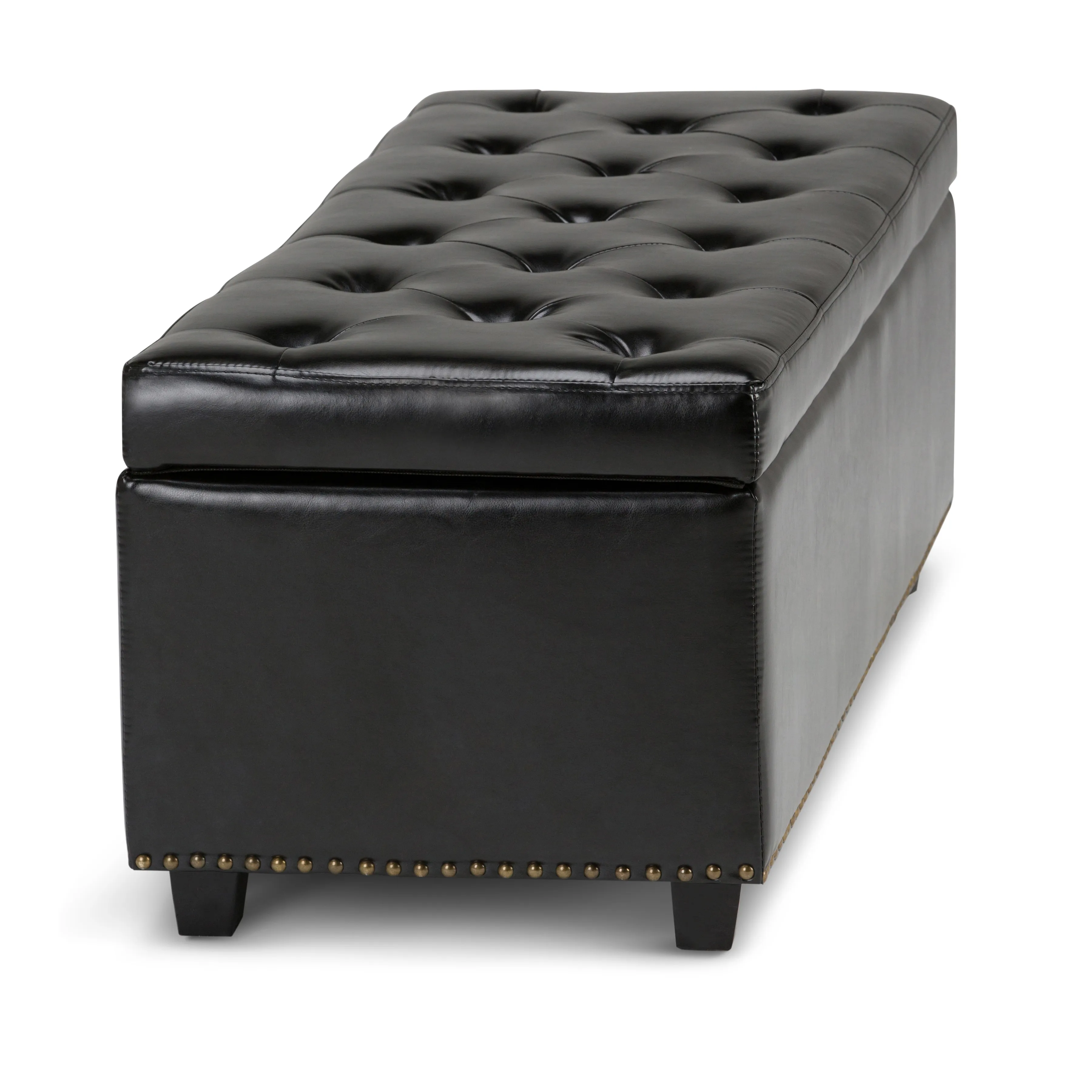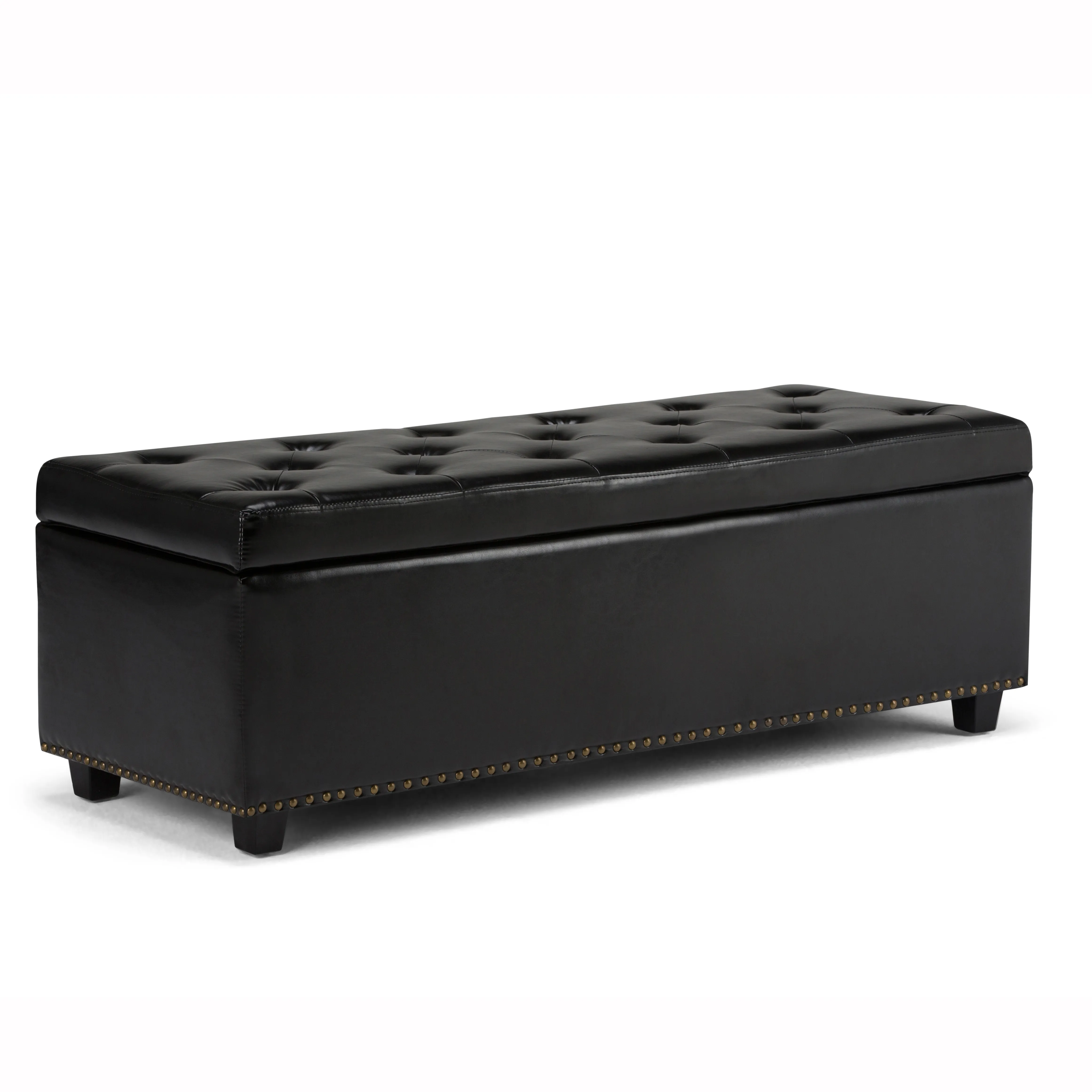 Clutter and junk everywhere. What you need is a well made storage solution that is both functional and beautiful. The Hamilton Large Rectangular Storage Ottoman Bench is durable, strong and sturdy. It features a beautiful tufted exterior, nail head trim, lift up lid and large storage interior. Whether you use this ottoman in your entryway, living room, family room, basement or bedroom, it will allow you to hide away all that mess.