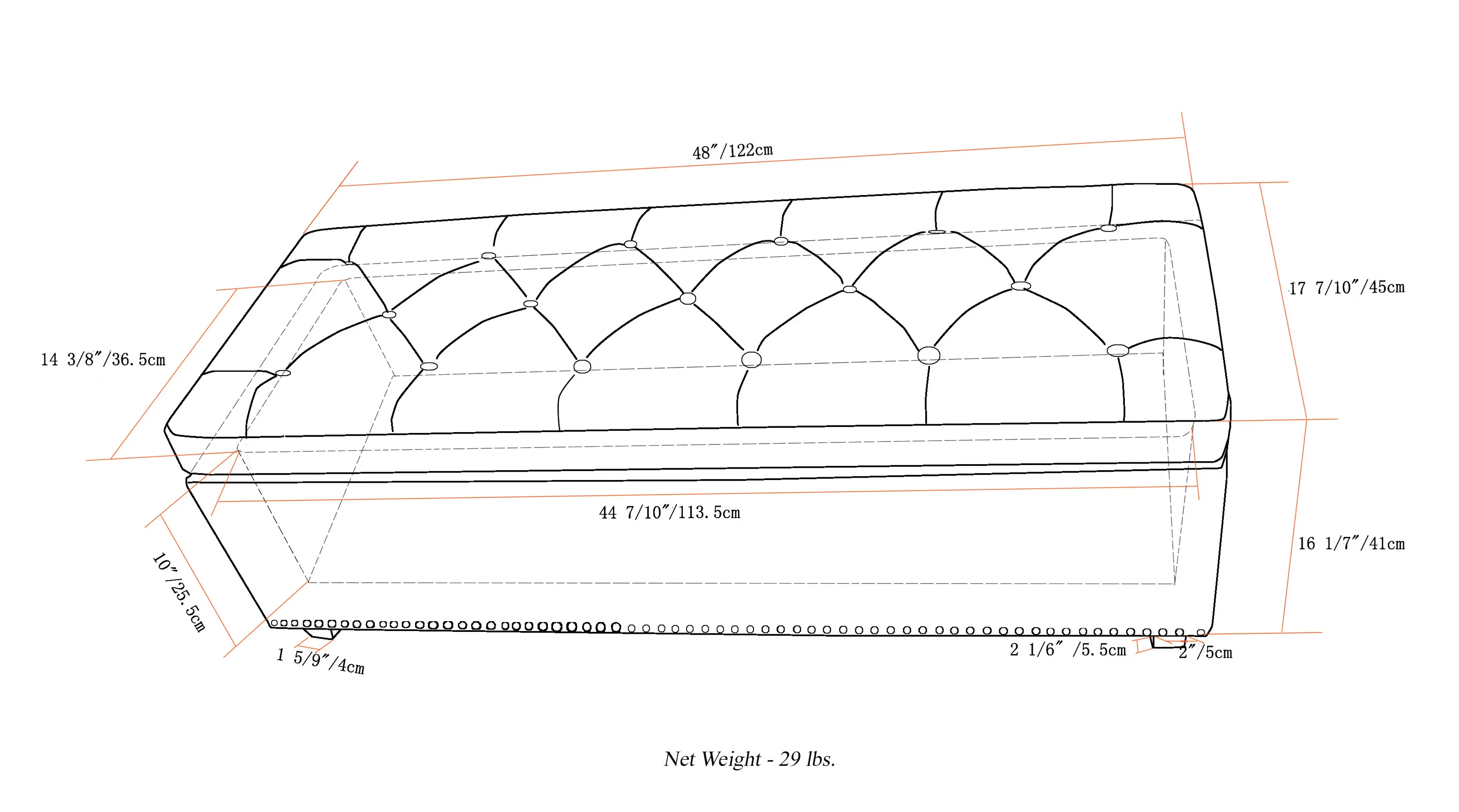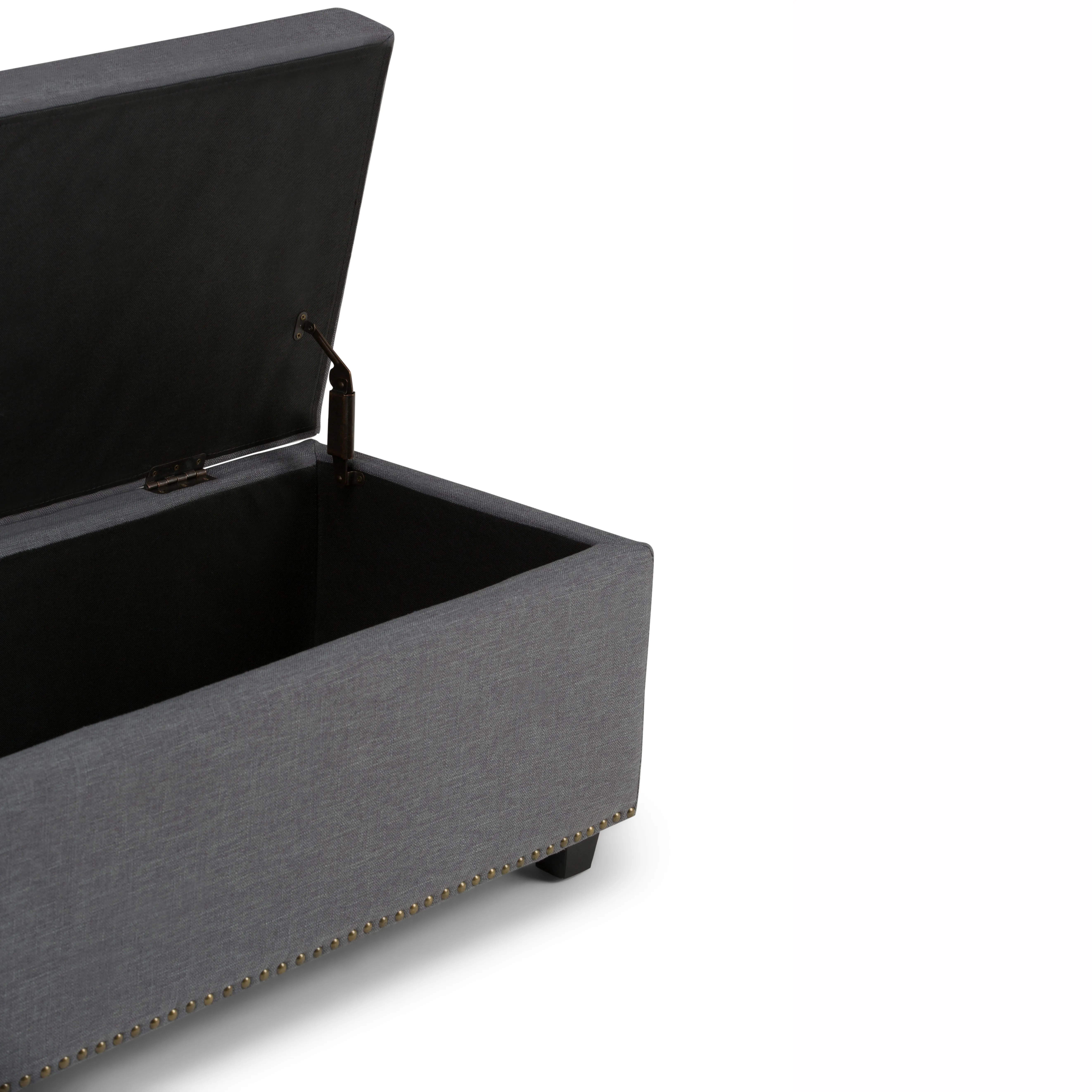 Clutter and junk everywhere. What you need is a well made storage solution that is both functional and beautiful. The Hamilton Large Rectangular Storage Ottoman Bench is durable, strong and sturdy. It features a beautiful tufted exterior, nail head trim, lift up lid and large storage interior. Whether you use this ottoman in your entryway, living room, family room, basement or bedroom, it will allow you to hide away all that mess.