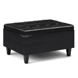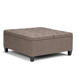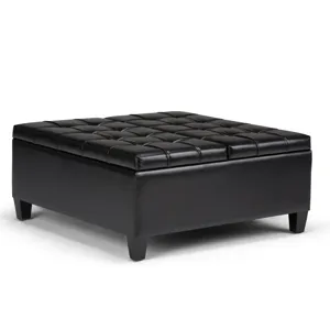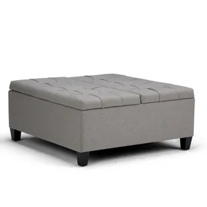 Maximize the space in your living room or family room with the Harrison Coffee Table Storage Ottoman. The contemporary, yet functional design of the ottoman makes it a necessity for any home. The split top features stylish tufted details and one side lifts up - perfect for a lap top, tablet or dining. The large interior space is the perfect solution for your storage needs. The Harrison Coffee Table Storage Ottoman is available in a variety of colors and upholstered options.
