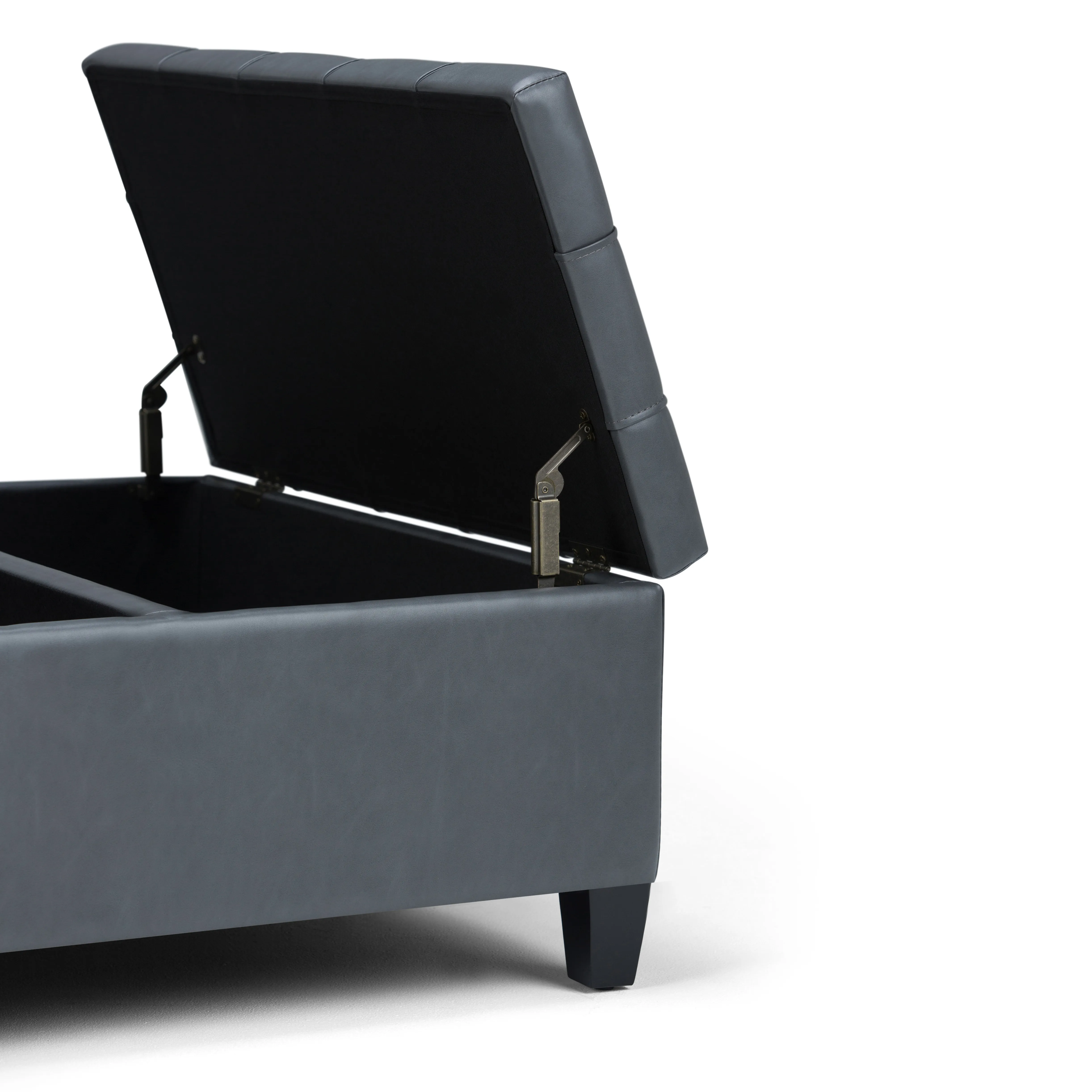 Maximize the space in your living room or family room with the Harrison Coffee Table Storage Ottoman. The contemporary, yet functional design of the ottoman makes it a necessity for any home. The split top features stylish tufted details and one side lifts up - perfect for a lap top, tablet or dining. The large interior space is the perfect solution for your storage needs. The Harrison Coffee Table Storage Ottoman is available in a variety of colors and upholstered options.