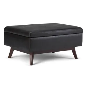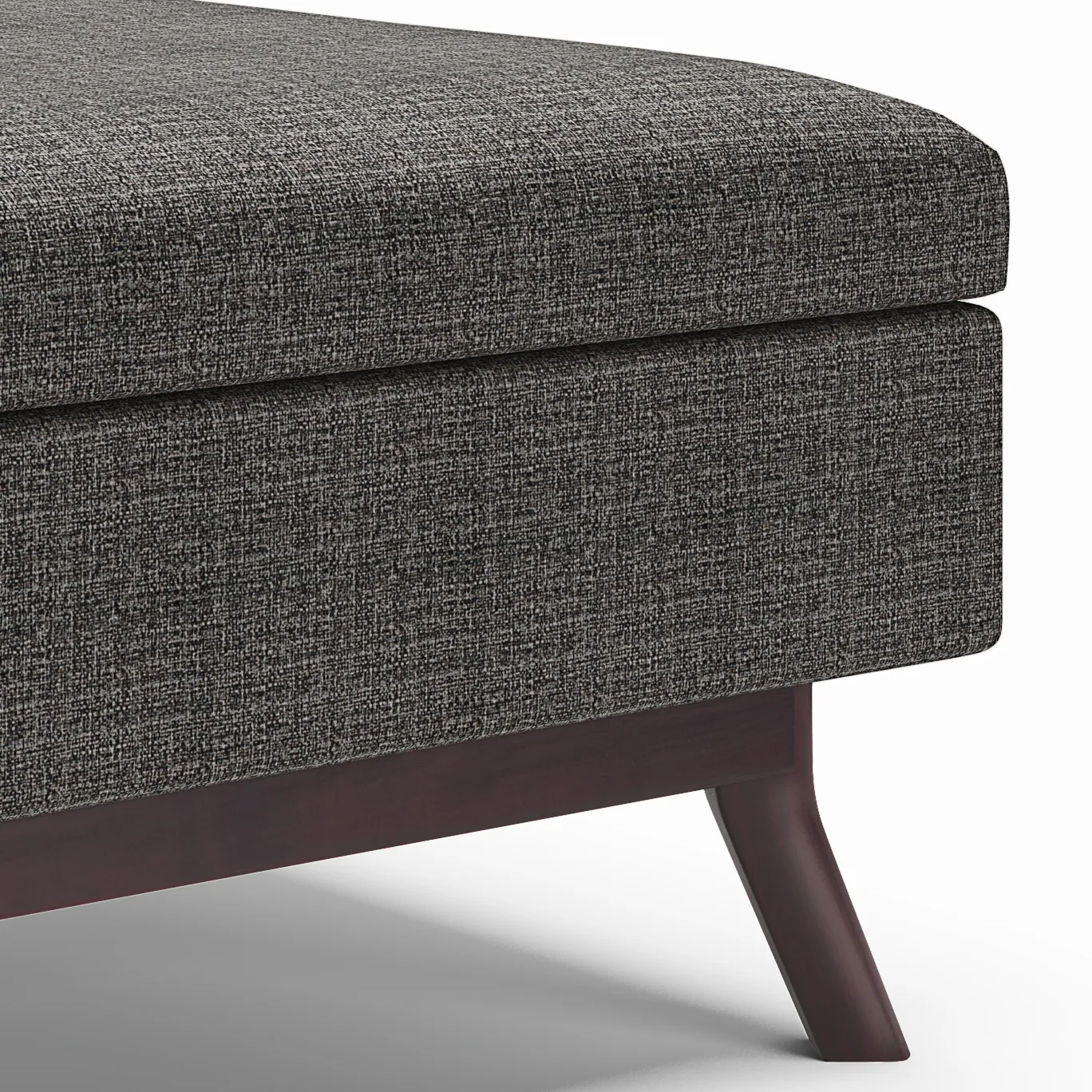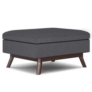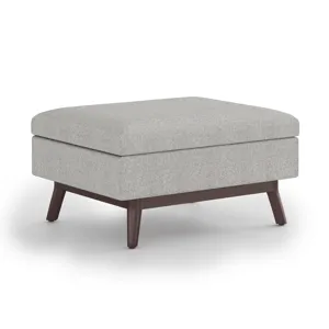 Update your space with the Owen Mid Century Storage Ottoman. Its modern style will add a fresh on trend look to your home. It features a lift up lid and a large interior storage space. Made with solid wood and premium fabrics for stylish durability and comfort. Whether used in the living room, family room or den, it will be the showpiece that completes the room.