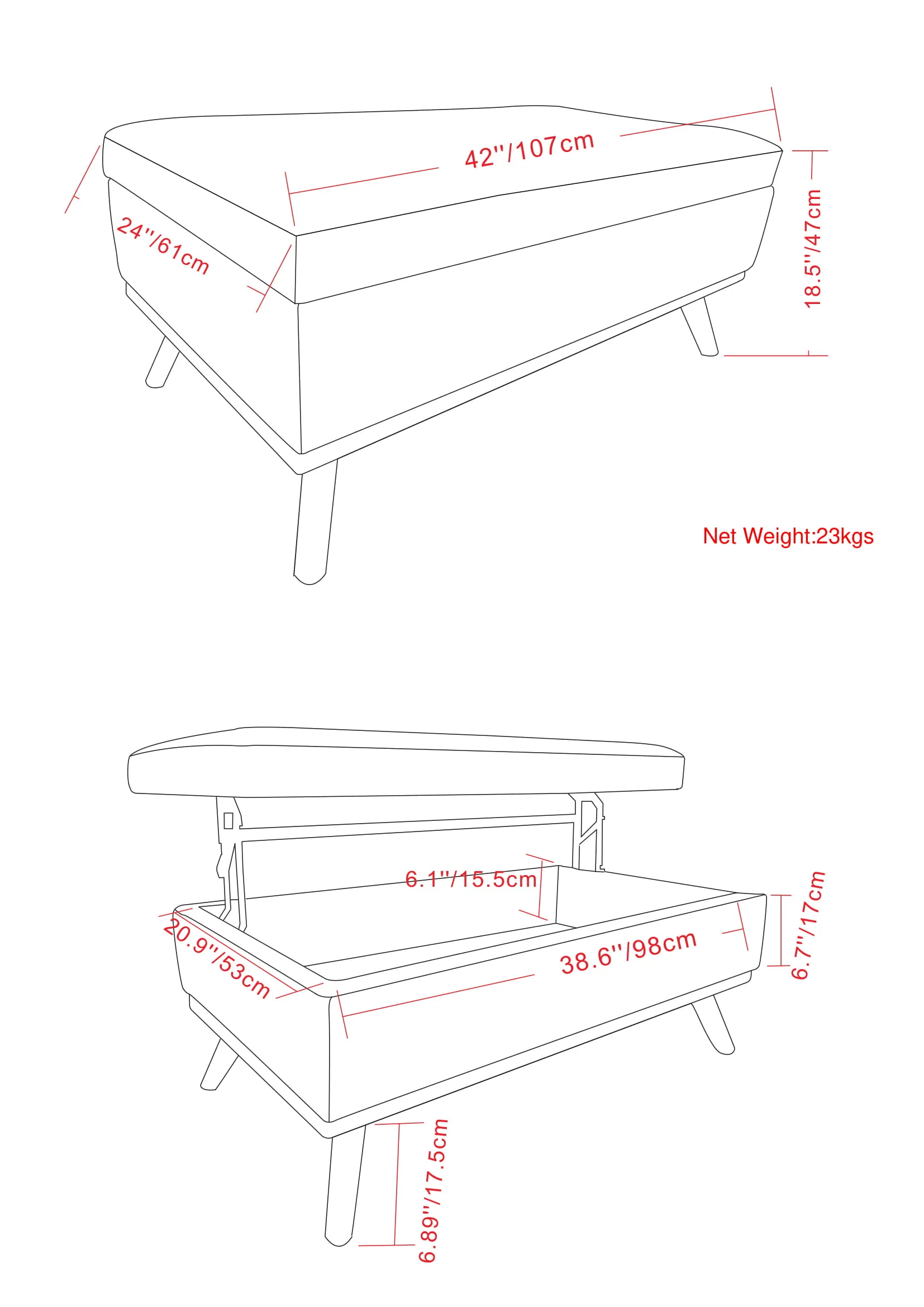 Update your space with the Owen Mid Century Lift Top Coffee Table Storage Ottoman. Its modern style will add a fresh on trend look to your home. It features a top that lifts up and out lid - perfect for using your laptop, tablet or dining and a large interior storage space. Made with solid wood and premium fabrics for stylish durability and comfort. Whether used in the living room, family room or den, it will be the showpiece that completes the room.