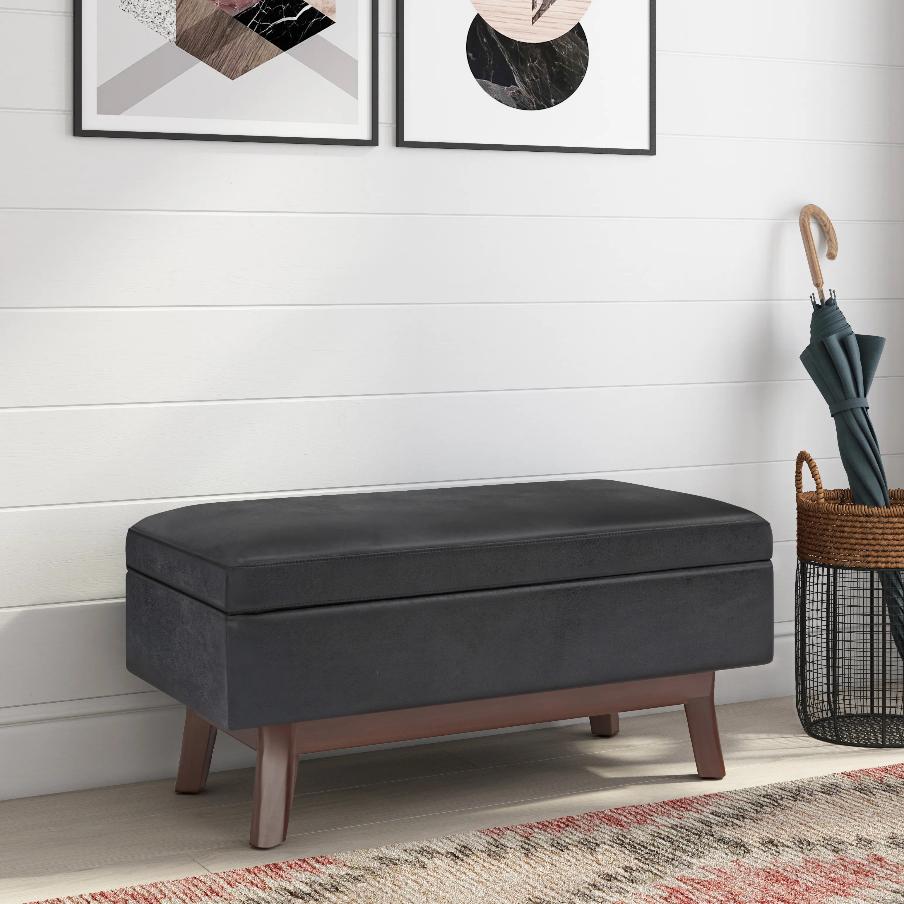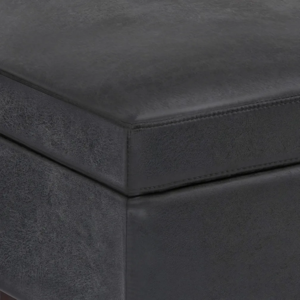 Owen - Small Rectangular Storage Ottoman - Distressed Black