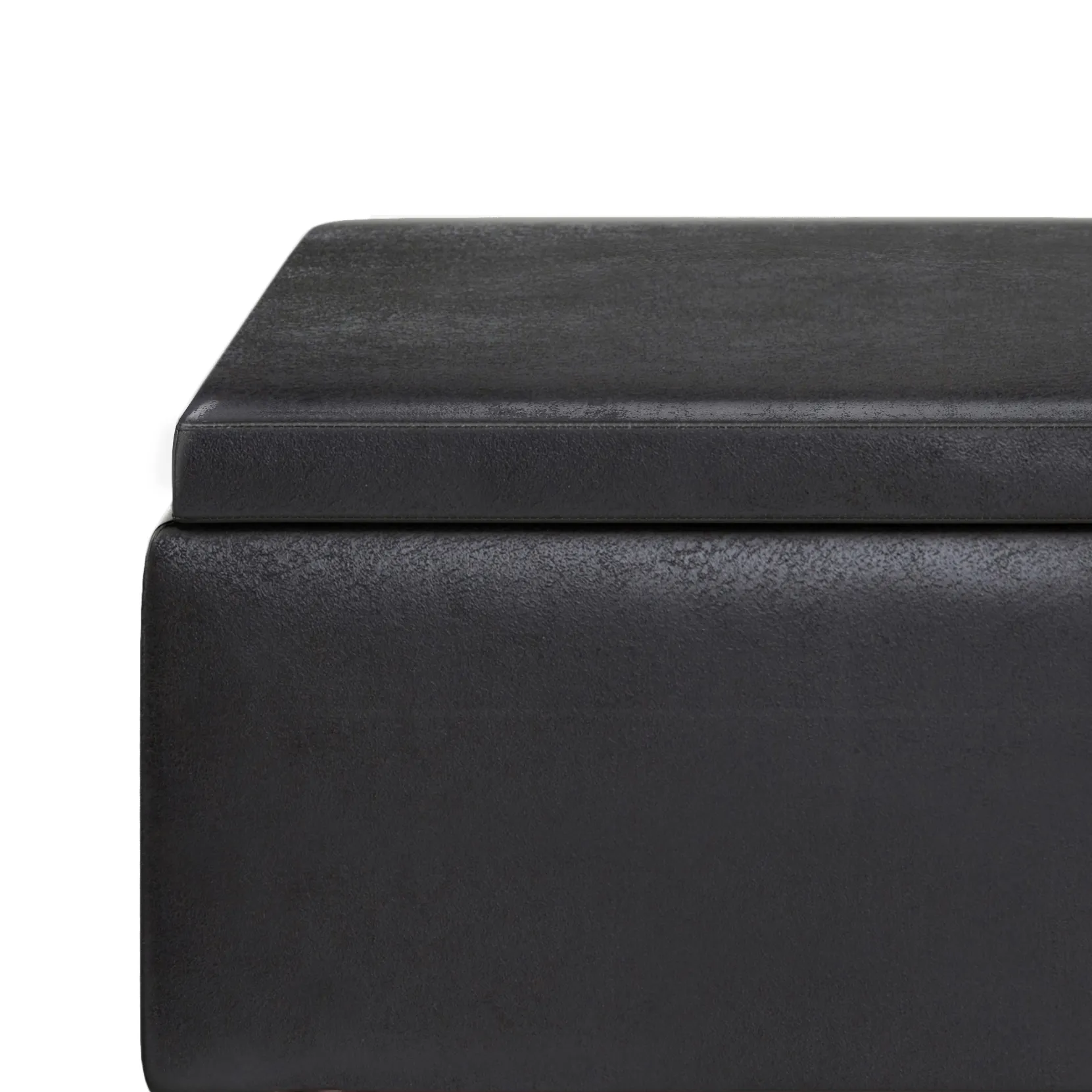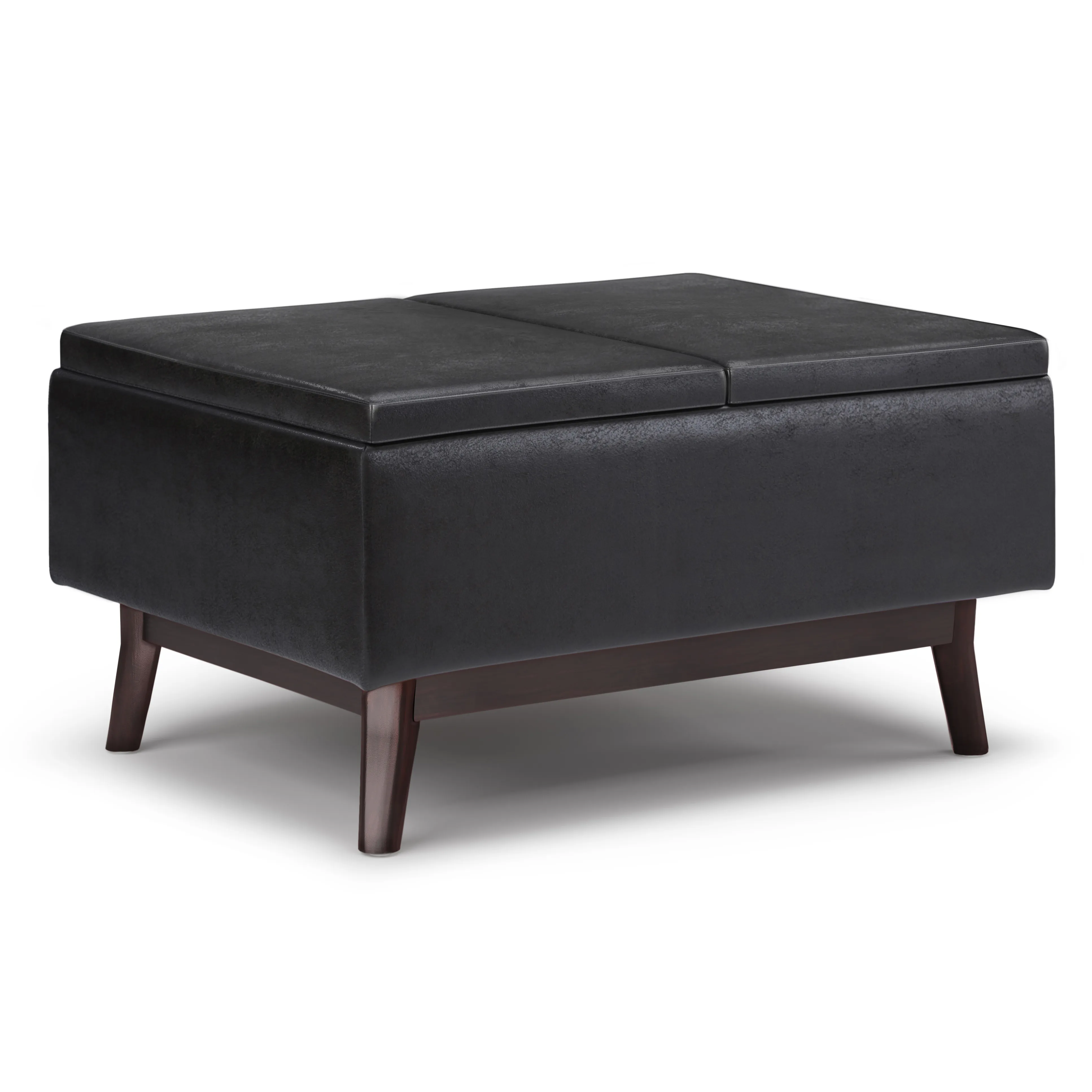 Owen - Tray Top Small Coffee Table Storage Ottoman - Distressed Black