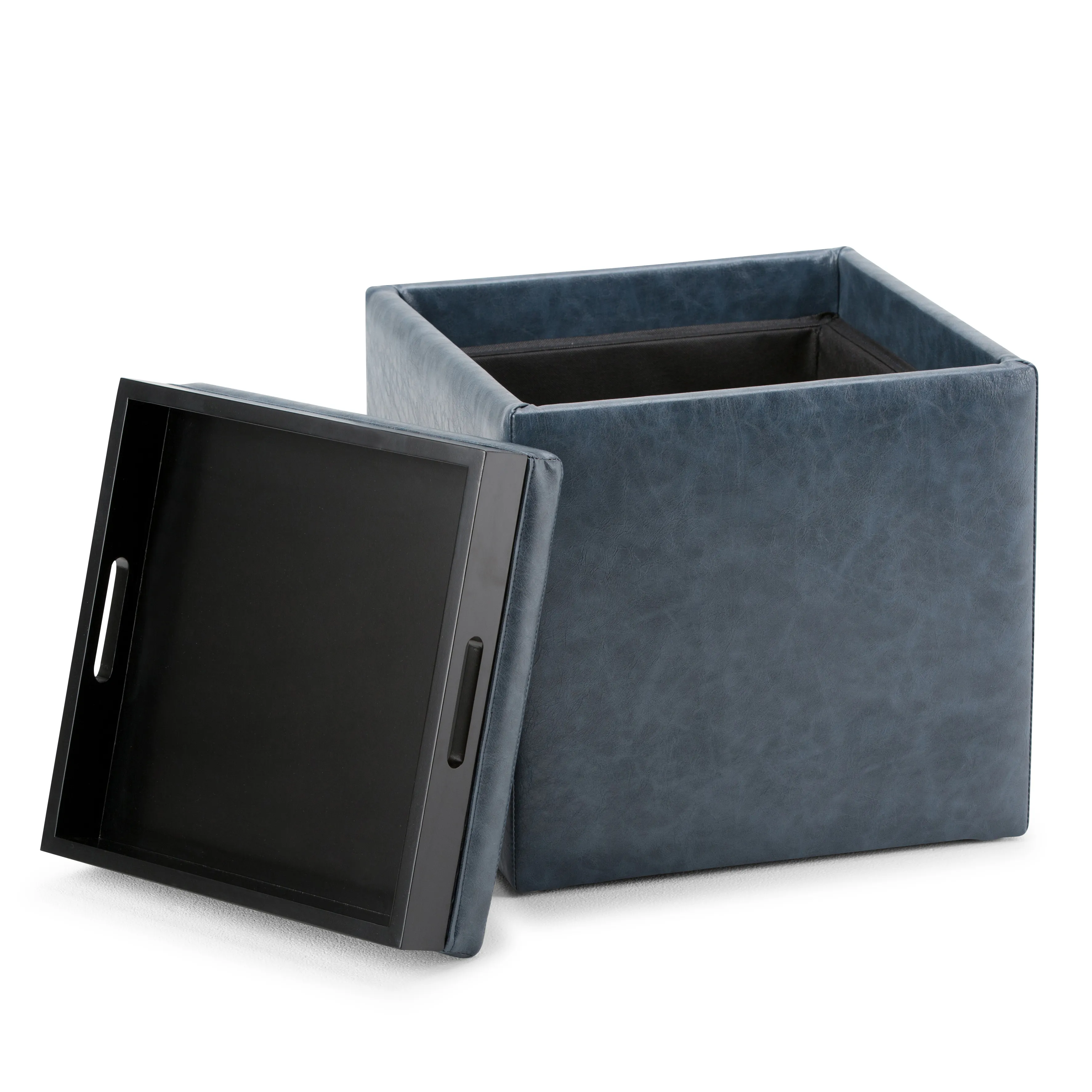 Rockwood - Cube Storage Ottoman with Tray - Denim Blue