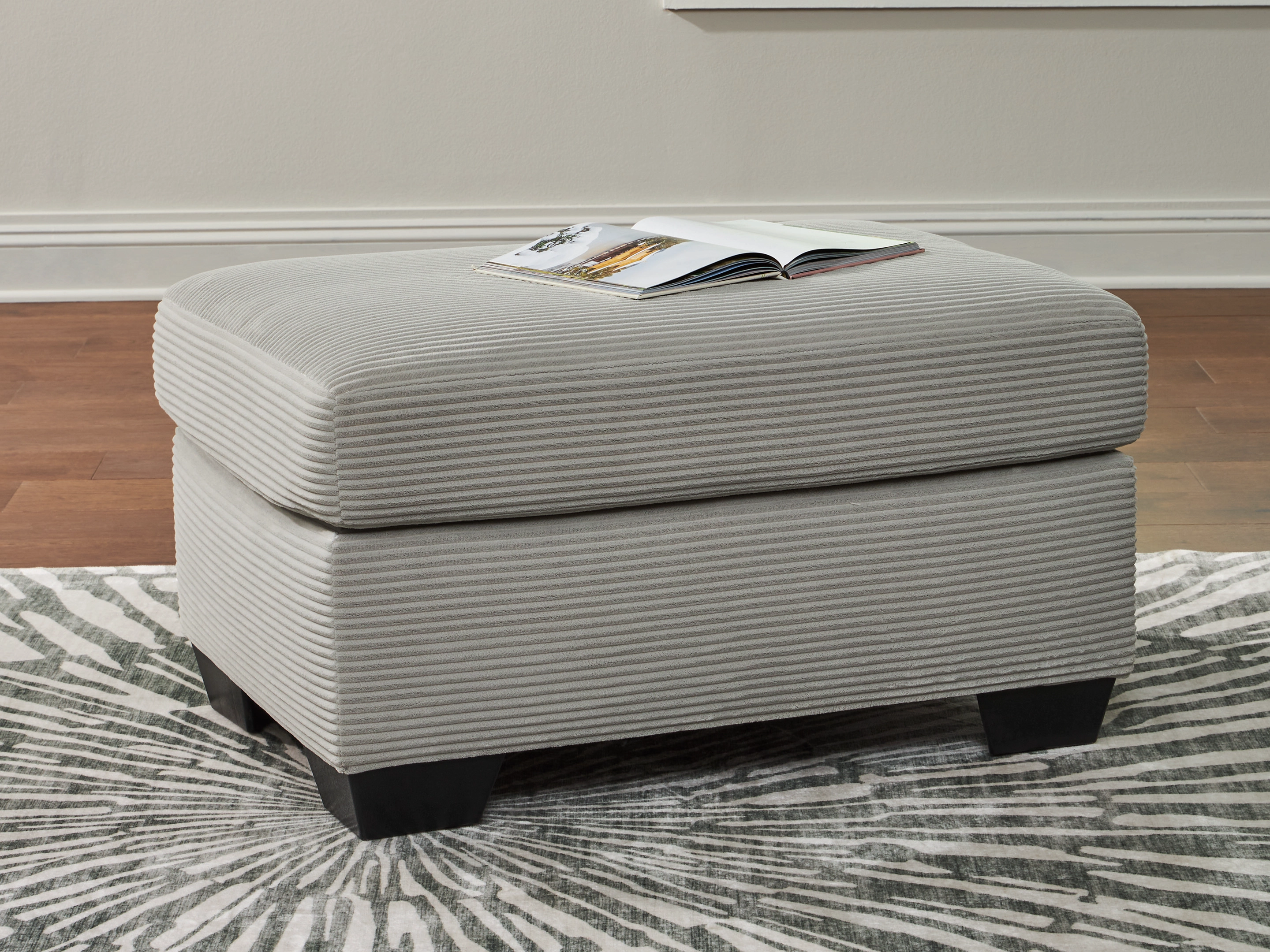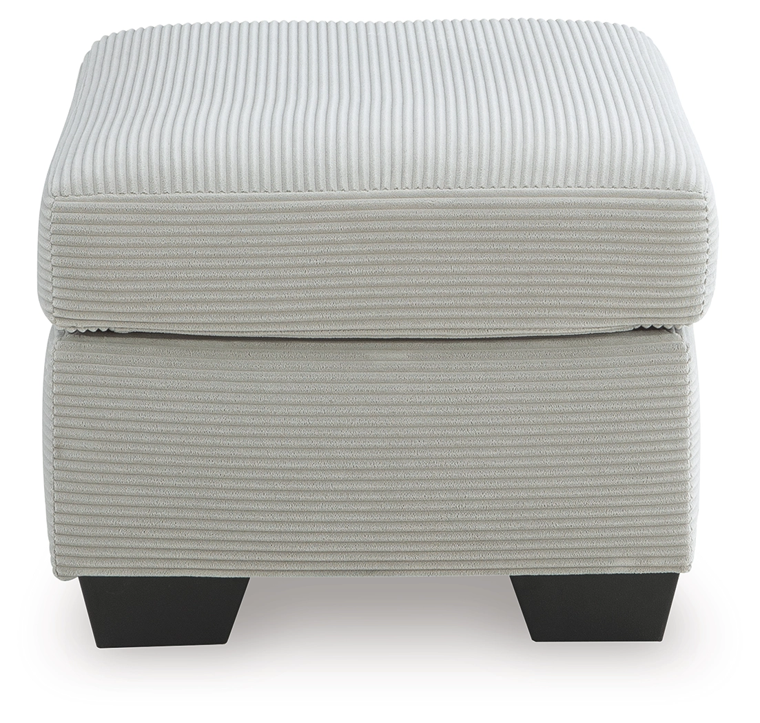 The crisp neutral hue and striking design details of this ottoman create a living room that expertly reflects your modern taste. For irresistibly cool textural appeal, the ultra-soft fabric is enhanced by a small-scale corded look. With a clean-lined silhouette, this ottoman allows you to take a trend-right approach to everyday living.