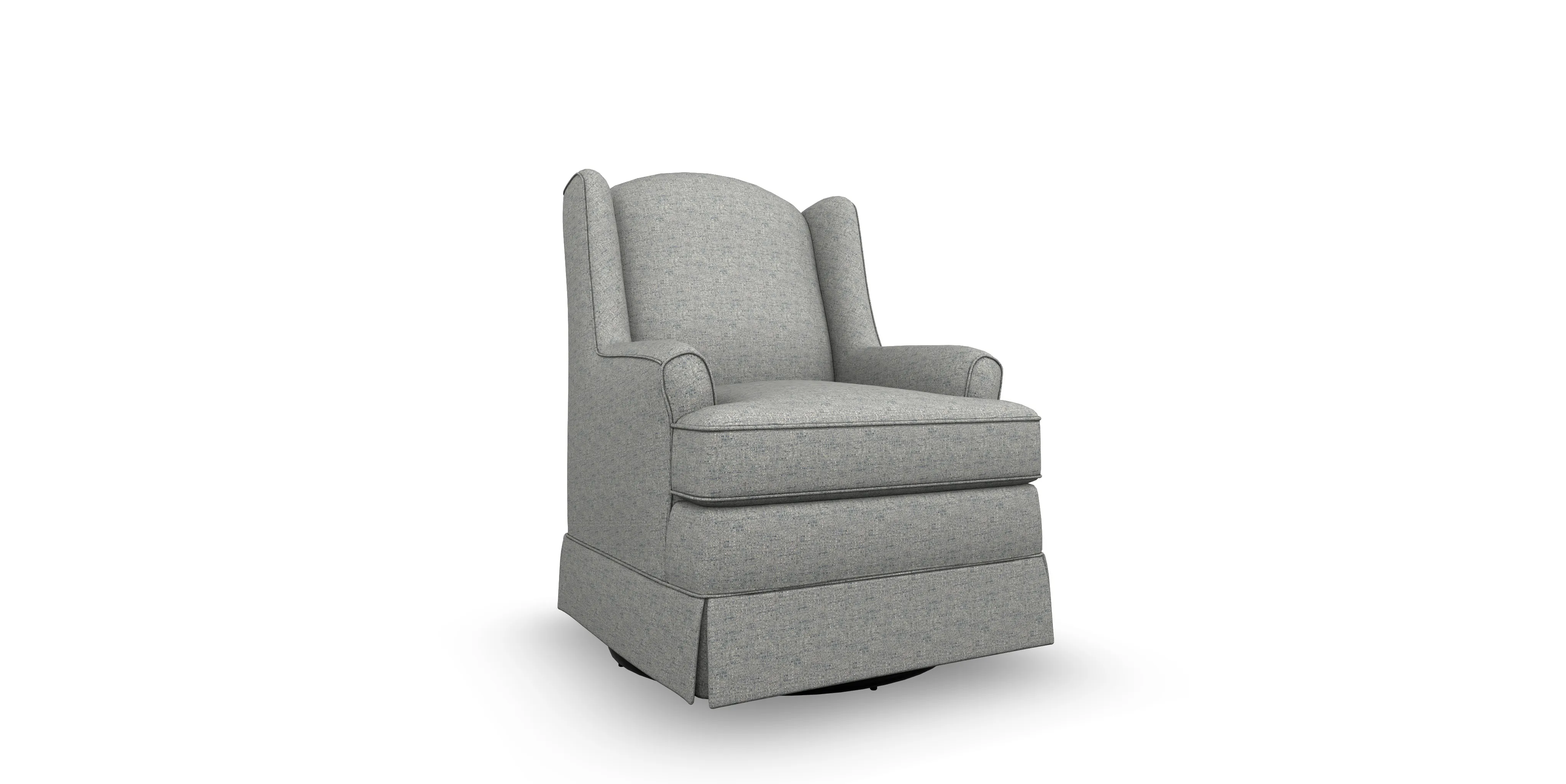 The Natasha swivel glider chair has some modern twists to a traditional classic. Sleek lines and elegant seams give it a sophisticated look as well. Best Home Furnishings provides 700 fabric options to choose from, so find the upholstery that best suits your tastes and the atmosphere of your home. With kiln-dried hardwood-frame parts, reinforced joints, expert Indiana craftsmanship and reversible seat cushions, the Natasha glider chair will last as it is passed down from generation to generation. Choose to glide with your feet up with the matching glide ottoman.