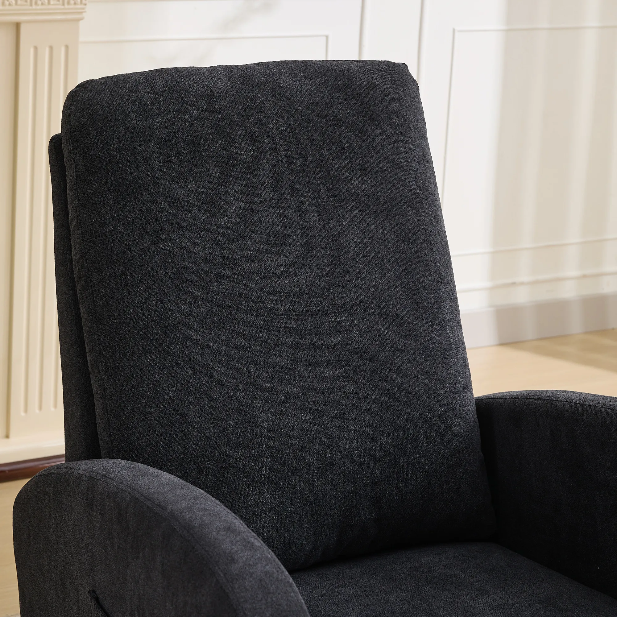 Rocking Chair For Nursery, Polyester Glider Chair With High Back And Side Pocket, Rocking Accent Armchair With Rubber Wood Legs For Living Room / Bedroom - Black
