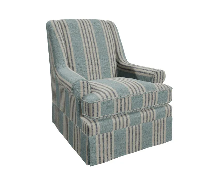 This is the swivel glider chair you'll choose to relax in time and time again. As part of the Paula Deen Home collection, it features Paula's premium down blend cushion for long lasting comfort and a perfectly proportioned seat depth and height. Classic elements such as the subtle wing shape, sock arm, and skirt make it a familiar and easy-to-love style. Also comes in a swivel (please see style number P042910BDSC).
