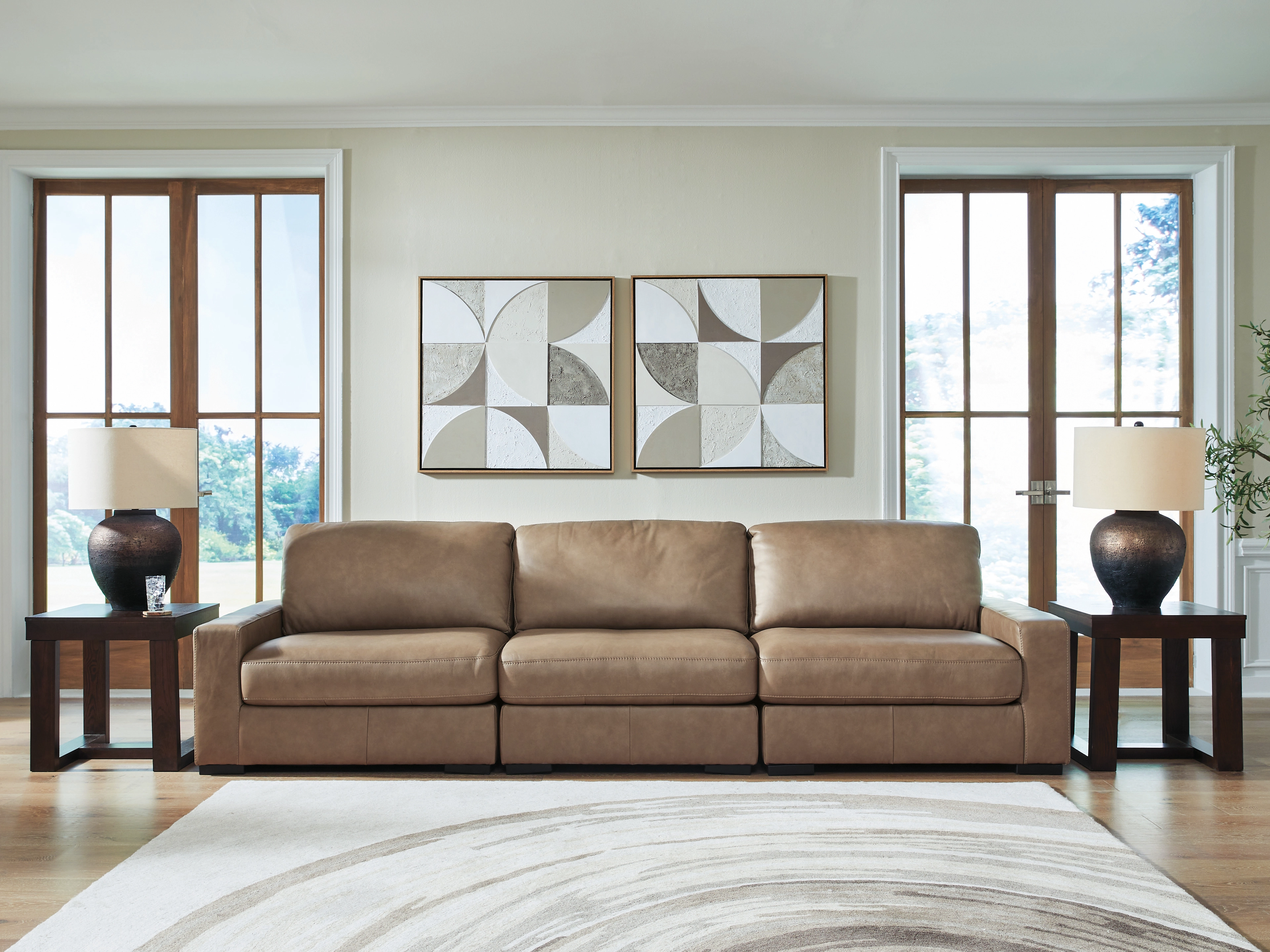 Modular pieces can float anywhere in a room setting; sides are finished (with no connectors)