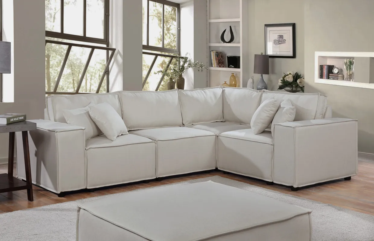 Melrose - Modular Sectional Sofa With Ottoman - Beige Linen